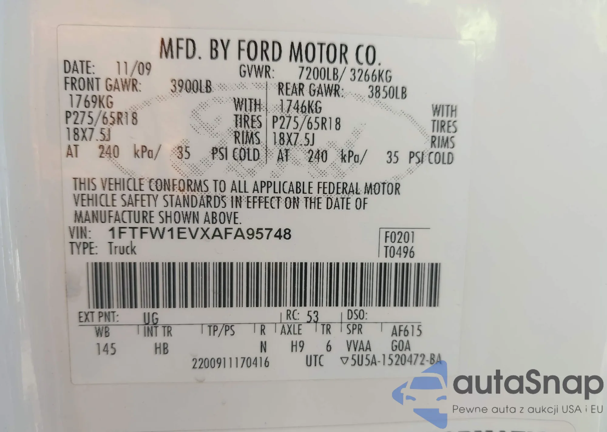 LOT: 43694712 VIN: 1FTNF21L13EC77627