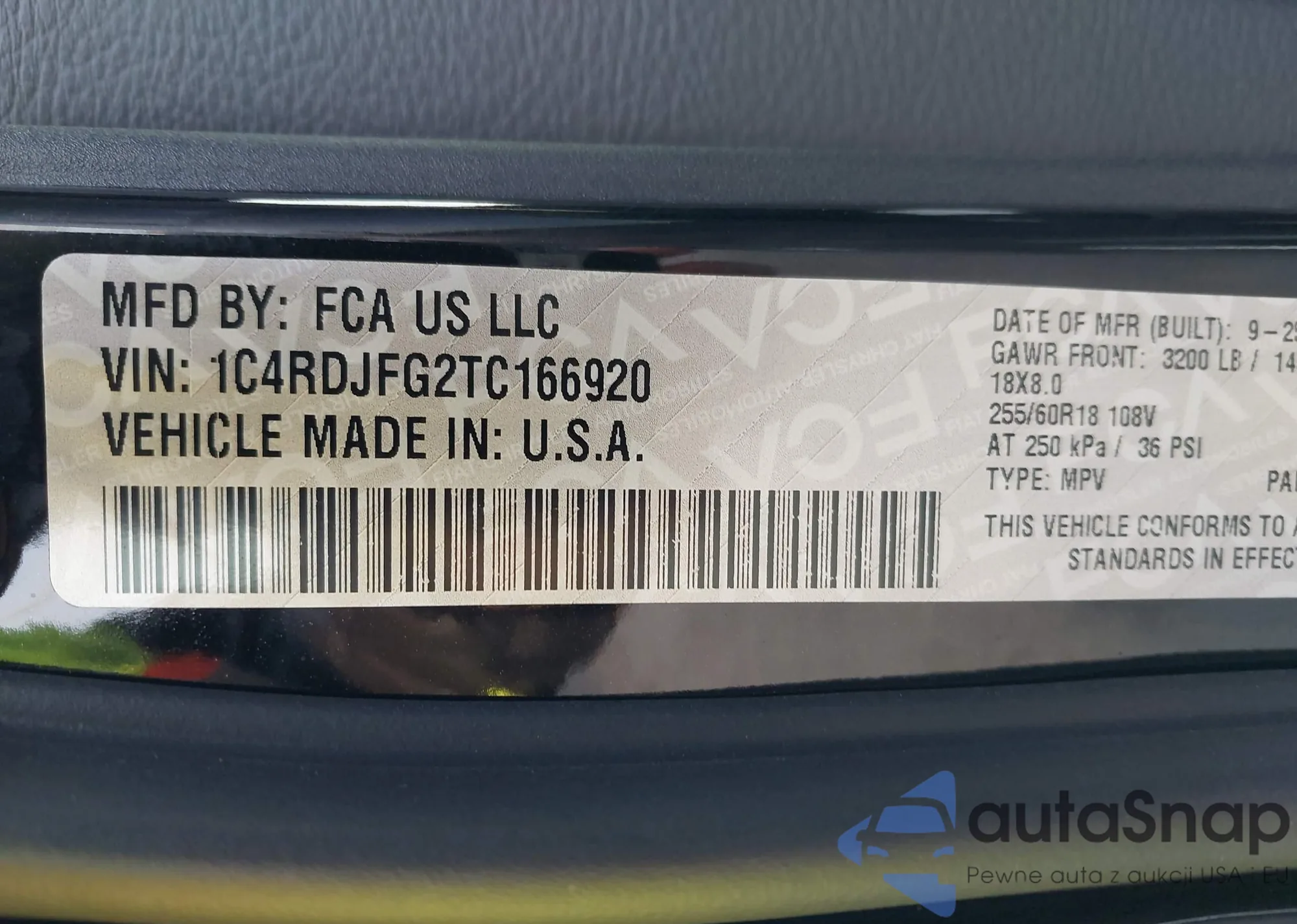 • VIN 1C4RDJFG2TC166920