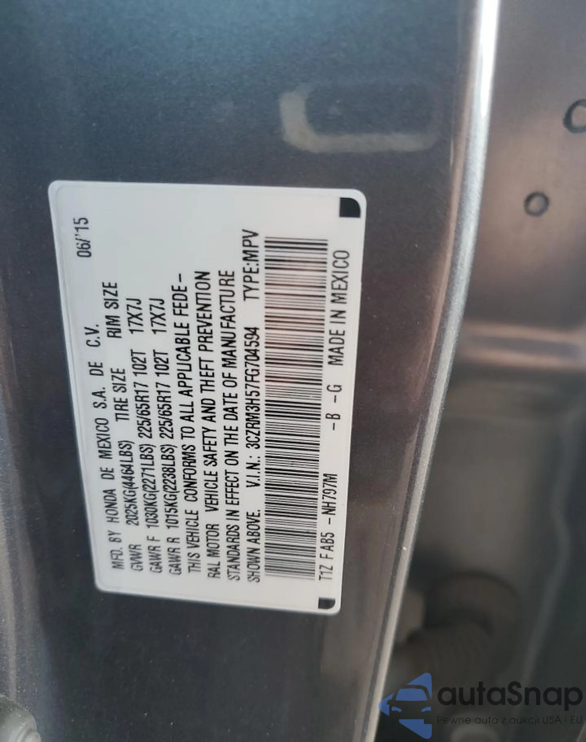 LOT: 91199915 VIN: 5YJYGAEE9MF207809