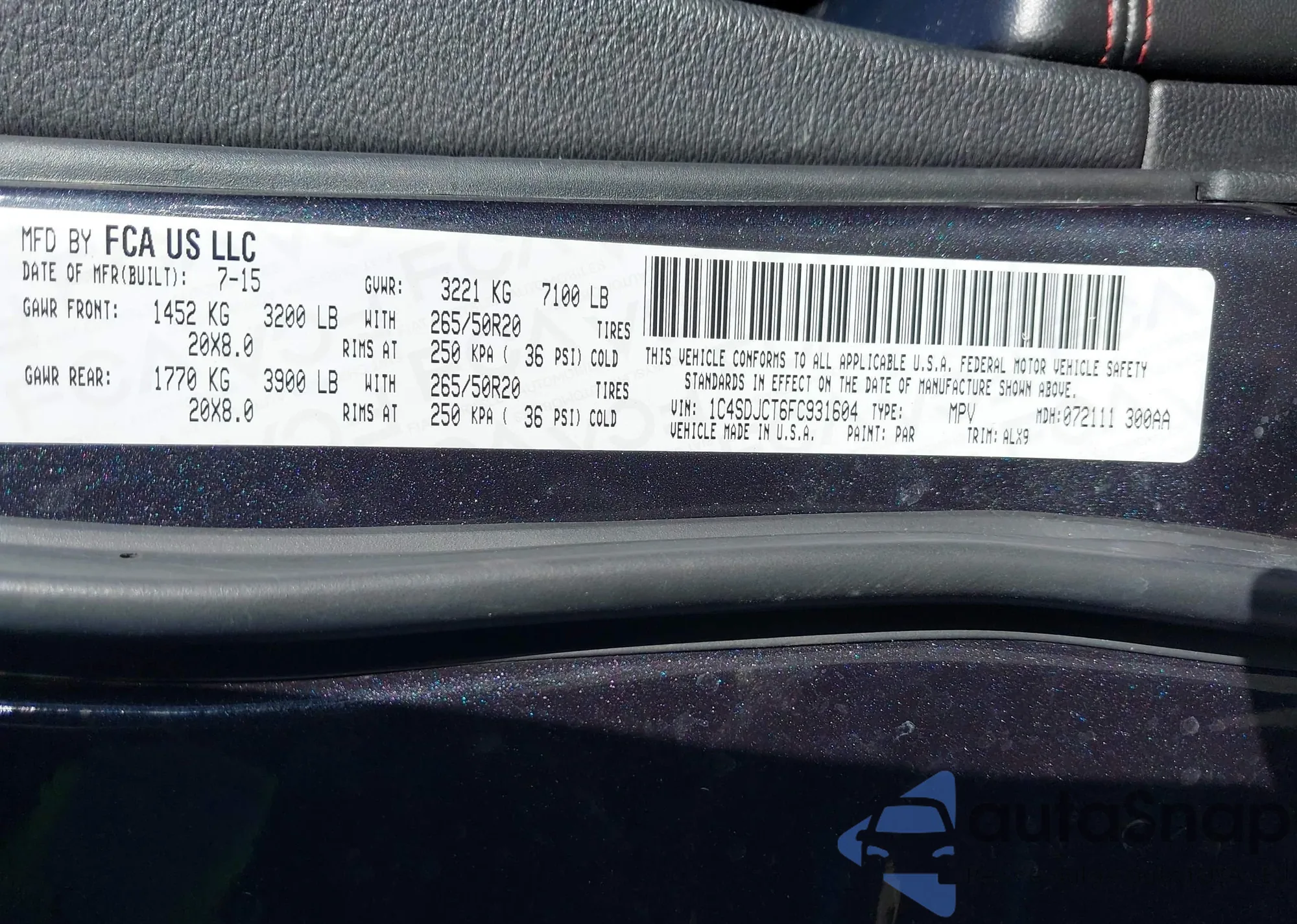 • VIN 1C4SDJCT6FC931604