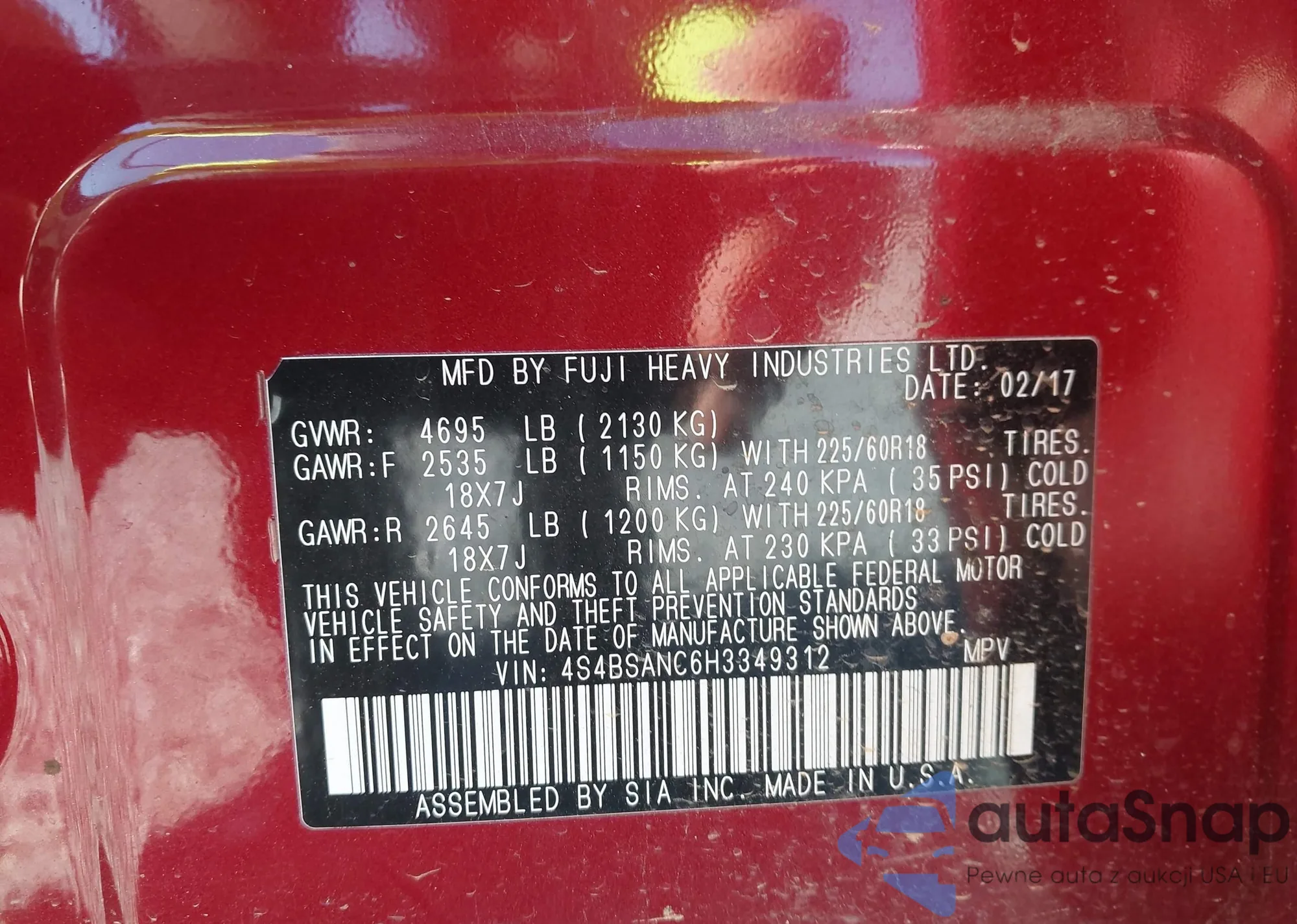 LOT: 43479369 VIN: 4S4BSANC6H3349312