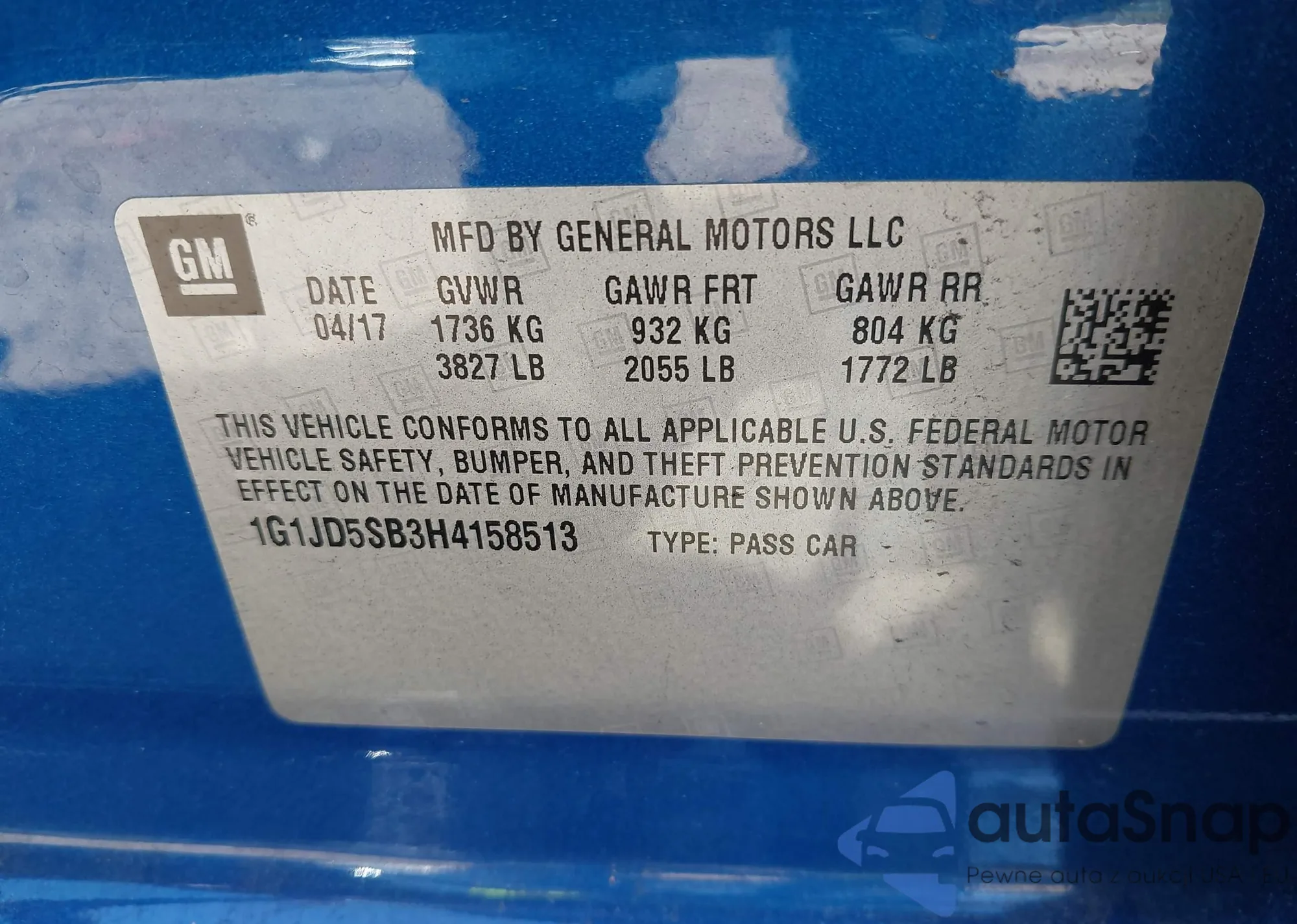 • VIN 1G1JD5SB3H4158513