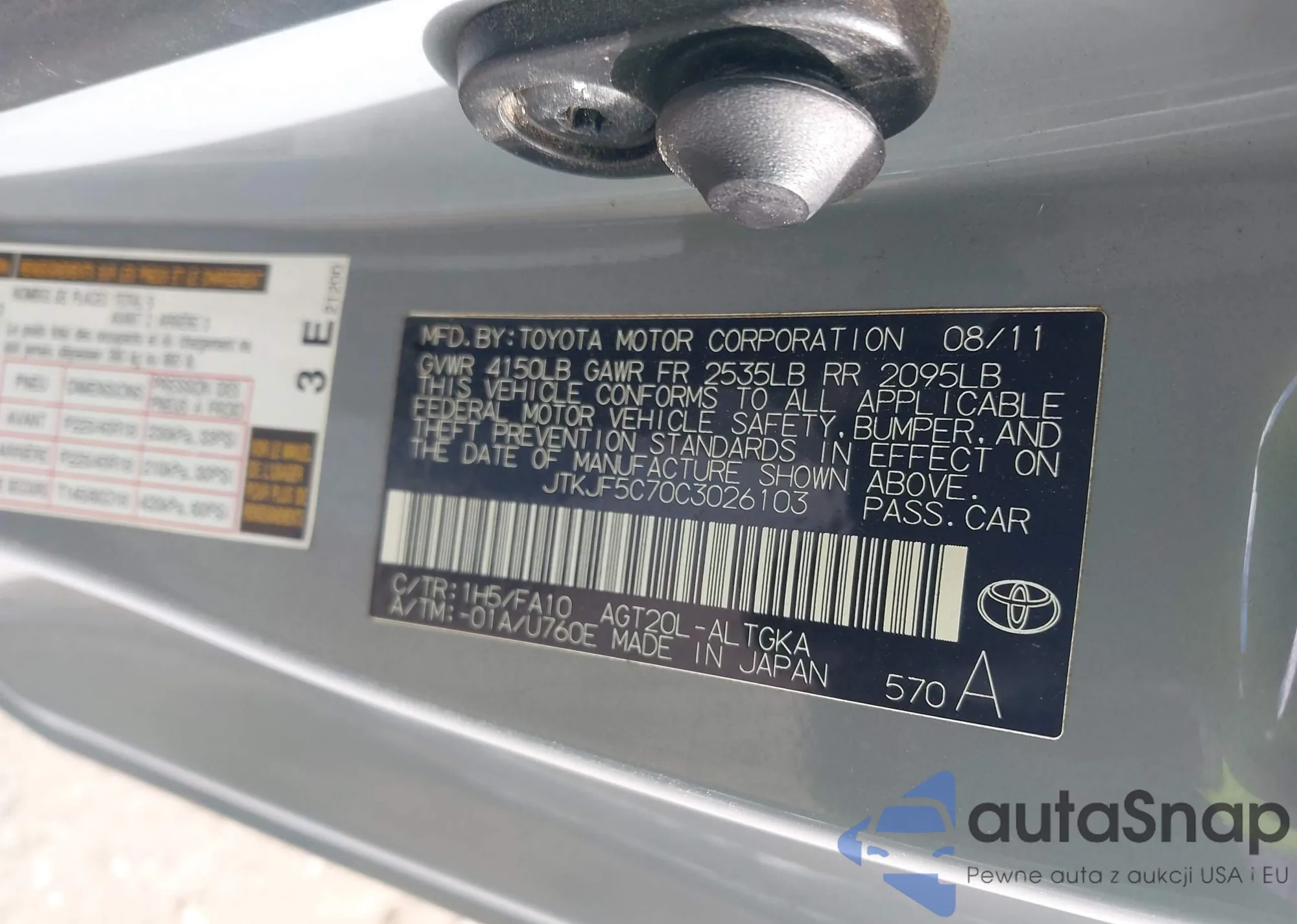 • VIN JTKJF5C70C3026103