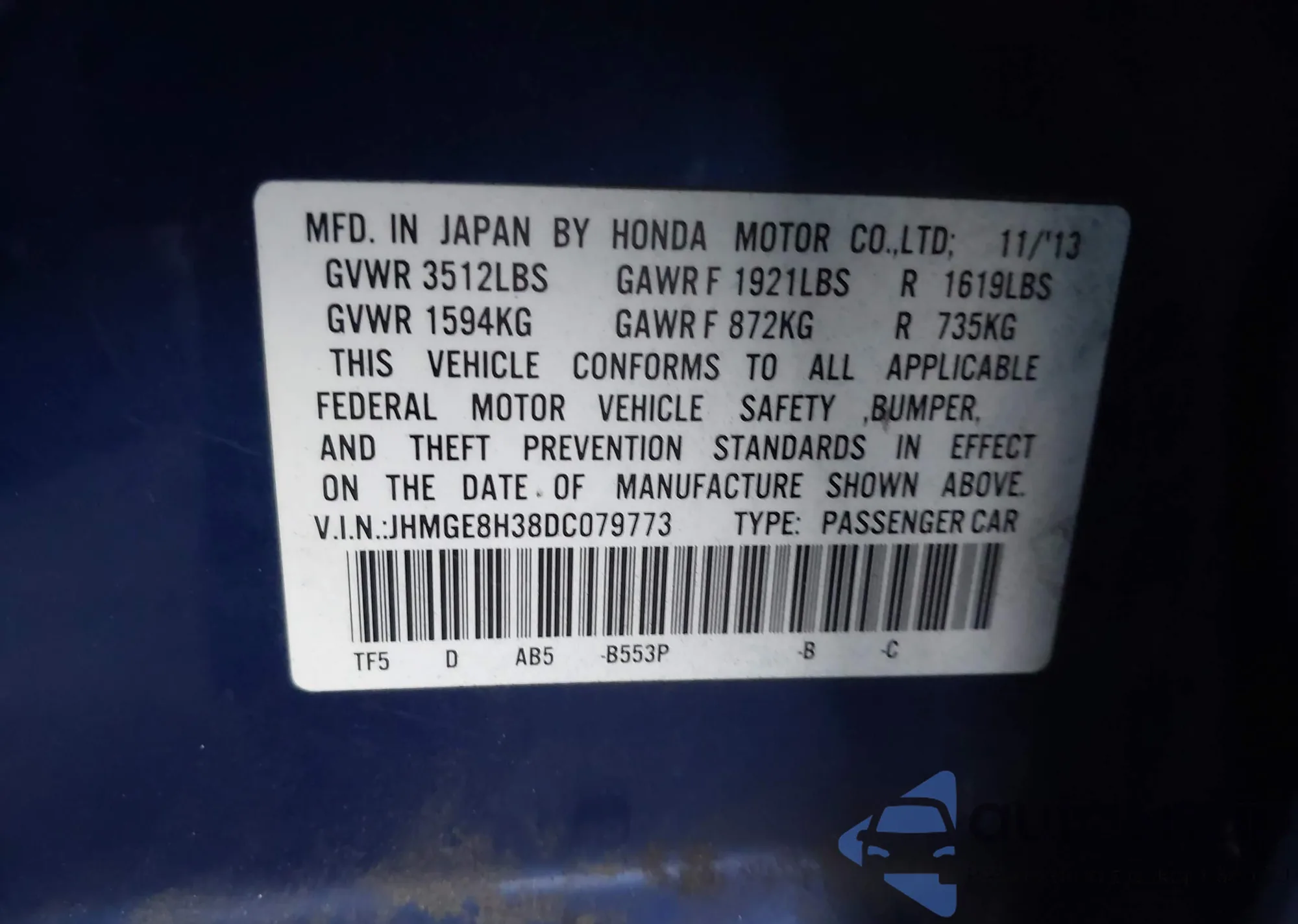 LOT: 43545273 VIN: 1HGCP2F83AA104187