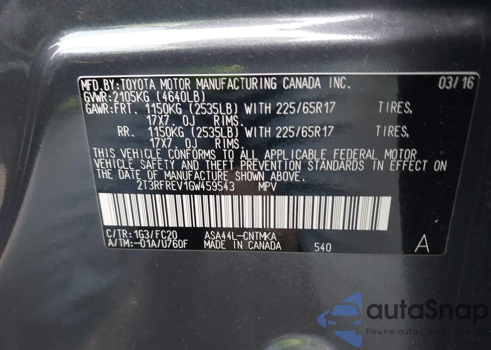 • VIN 4T3RWRFV9NU060312