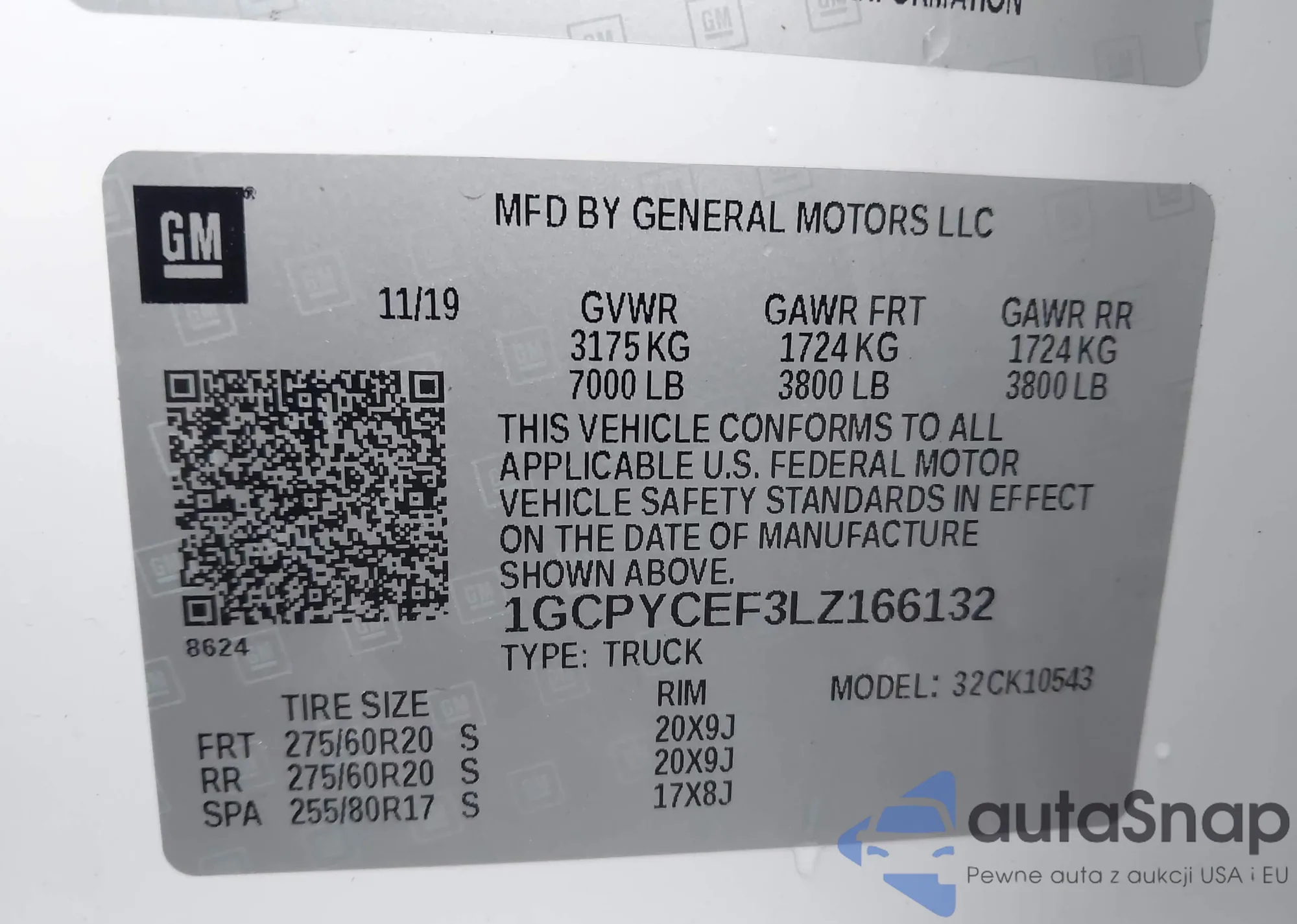 LOT: 43265003 VIN: 1GCPYCEF3LZ166132