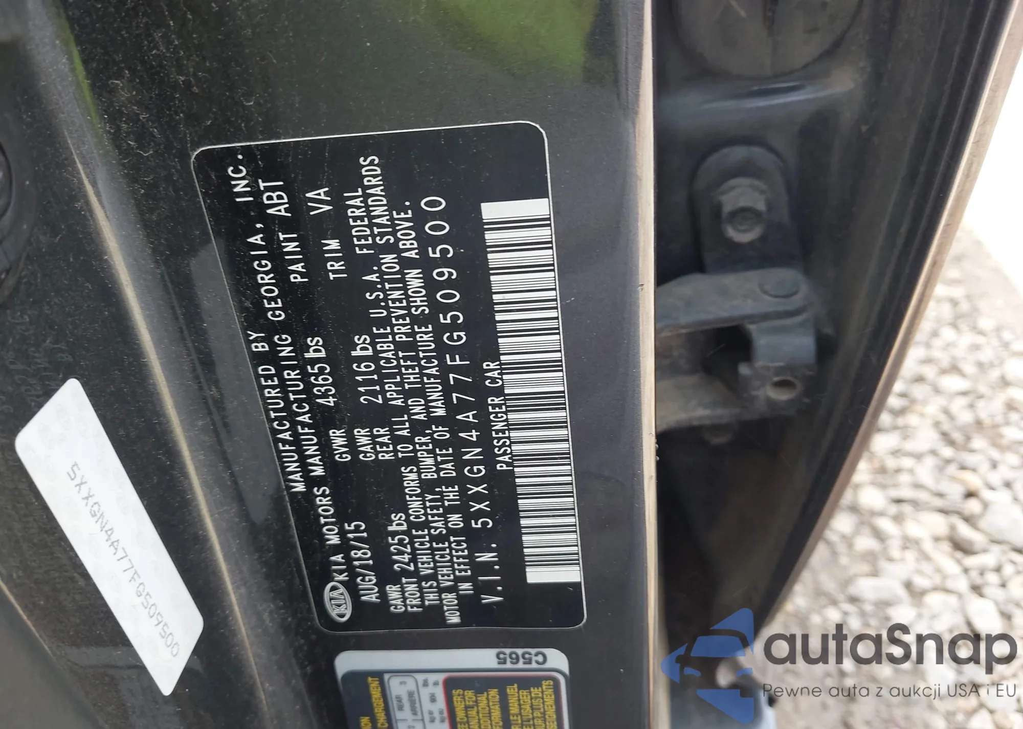 LOT: 43316596 VIN: 5XXGN4A77FG509500