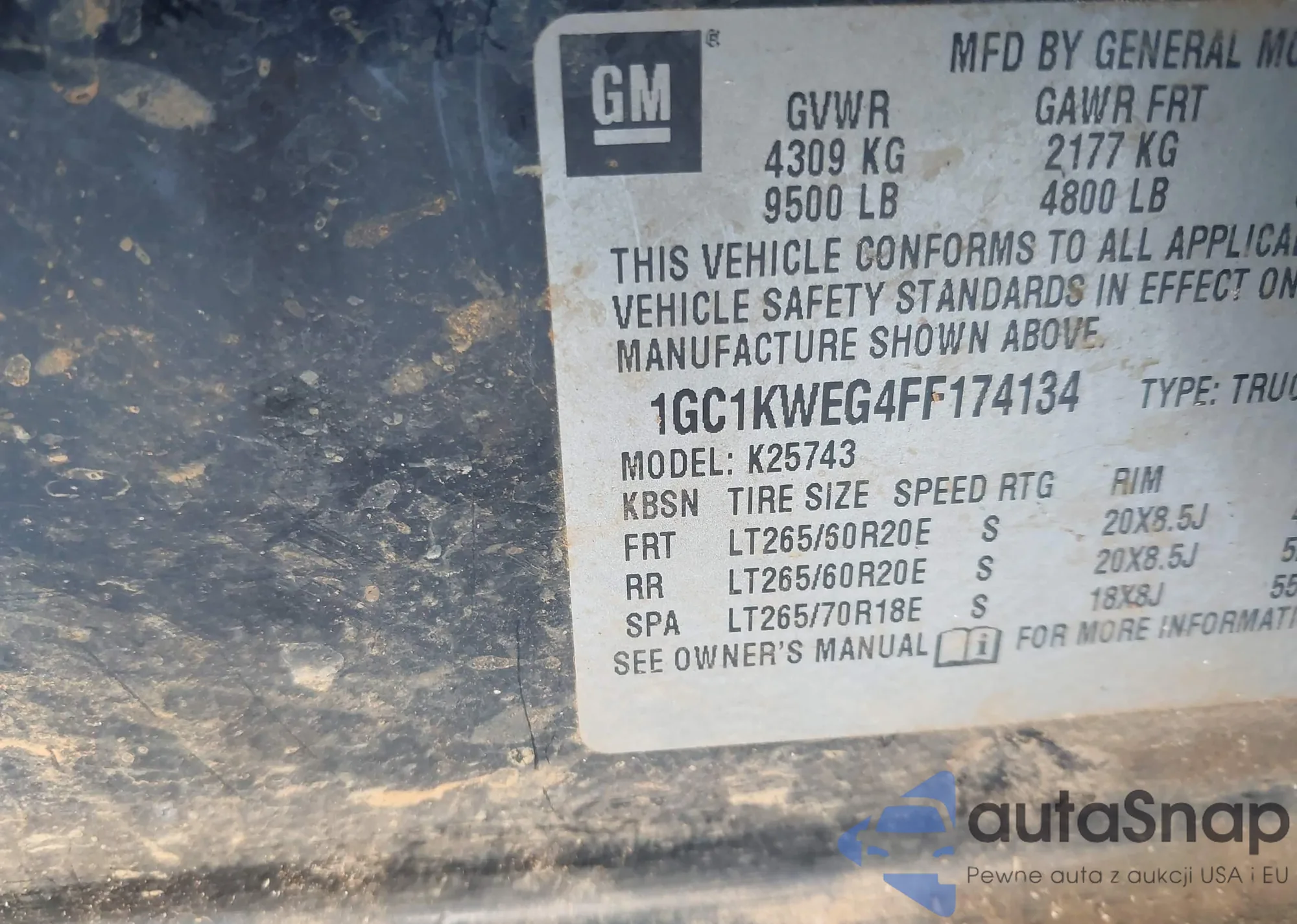 • VIN 1GC1KWEG4FF174134