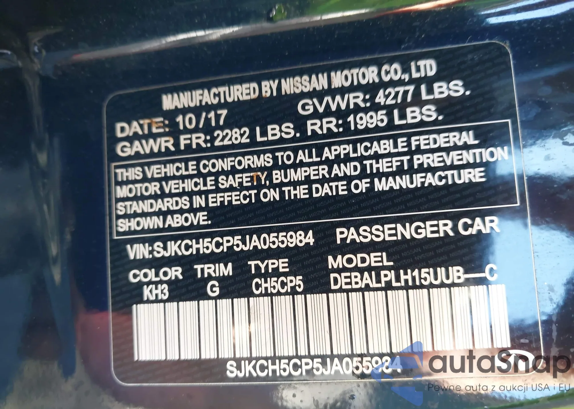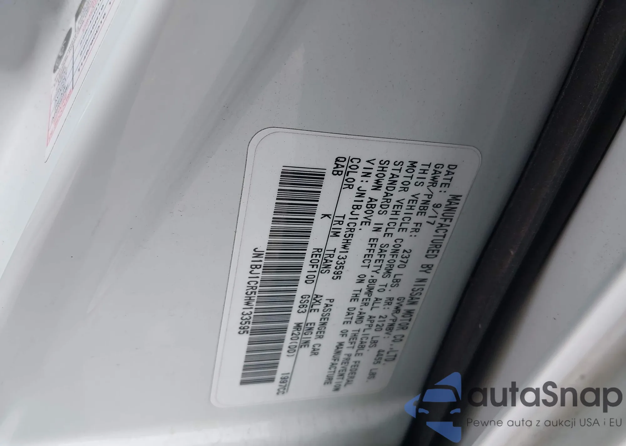 • VIN JN1BJ1CR5HW133595