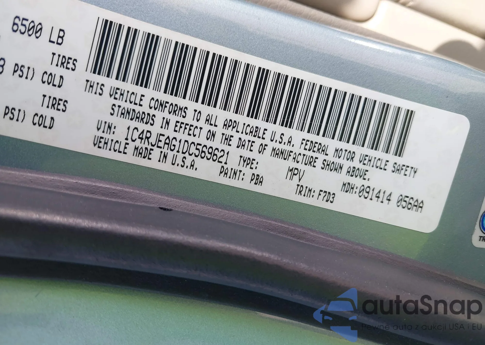 • VIN 1C4RJEAG1DC569621