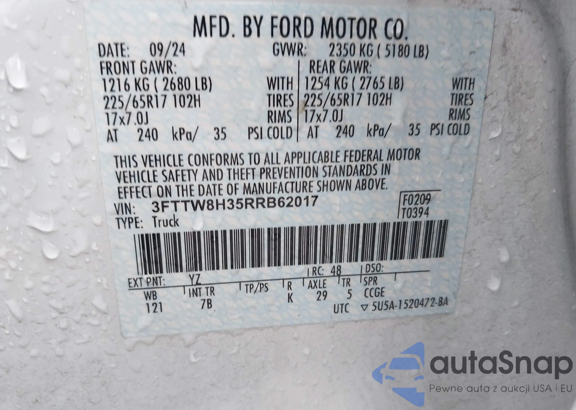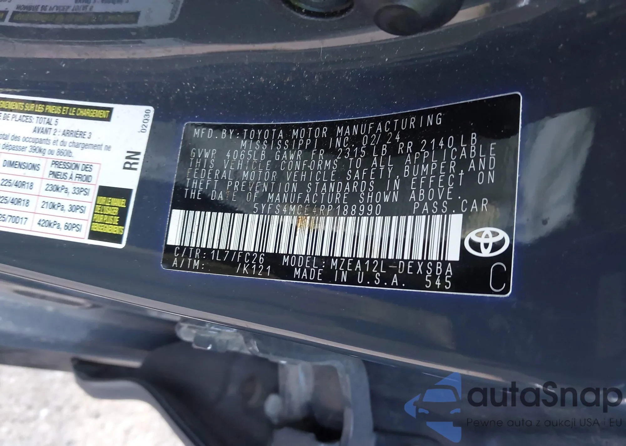 LOT: 43499246 VIN: WBXYJ1C0XL5P15573