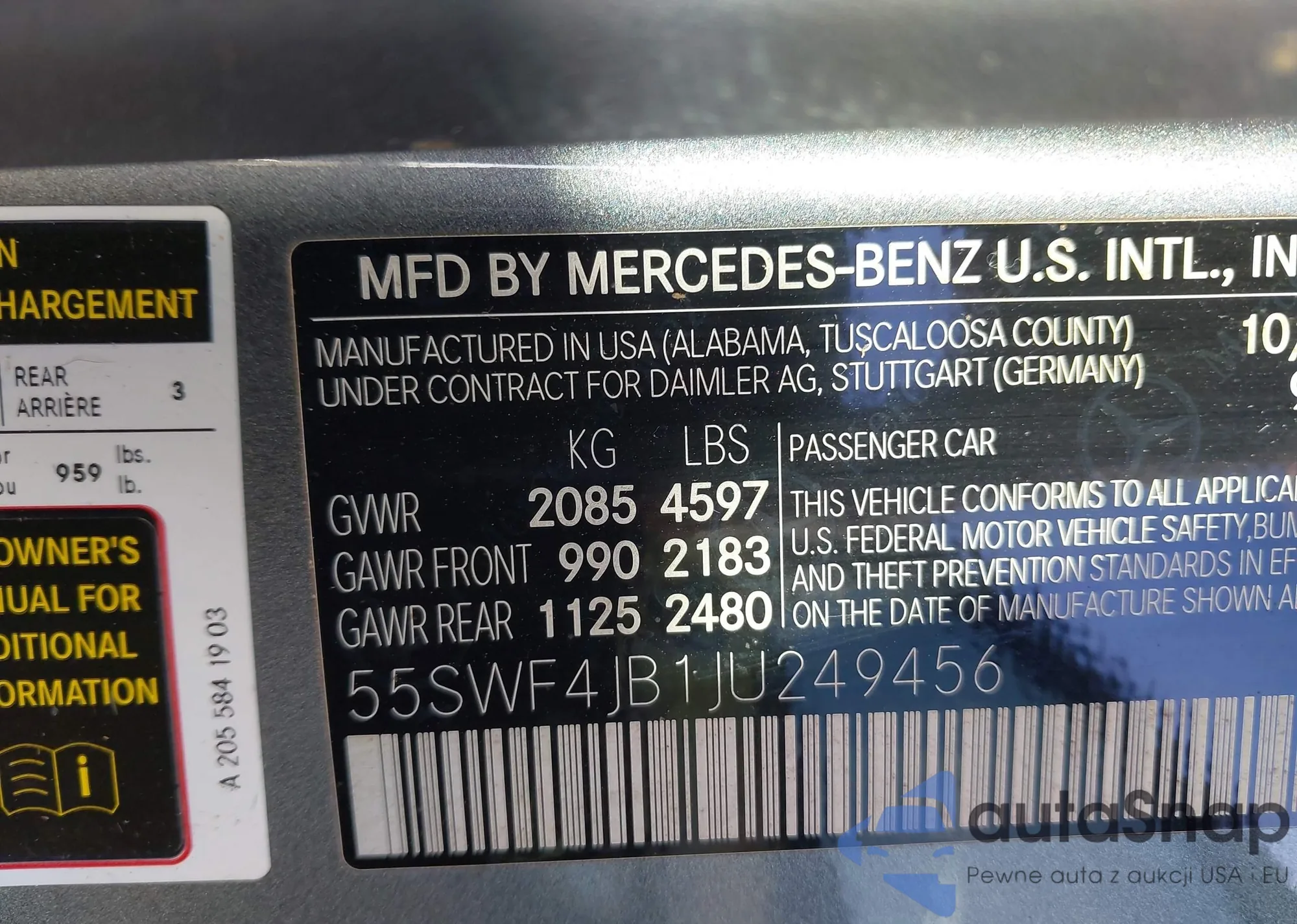 • VIN 55SWF4JB1JU249456
