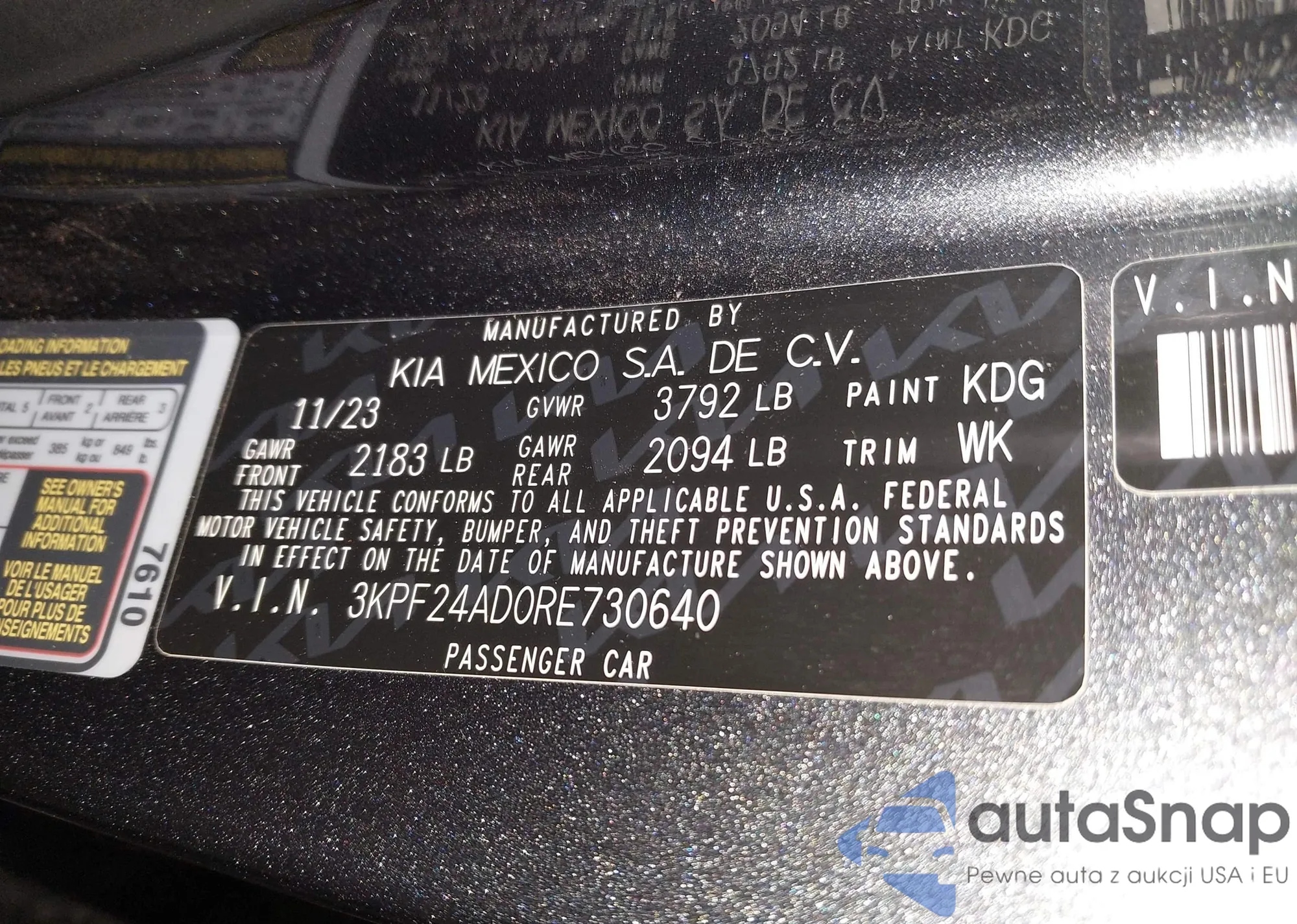 LOT: 43505907 VIN: 3KPF24AD0RE730640