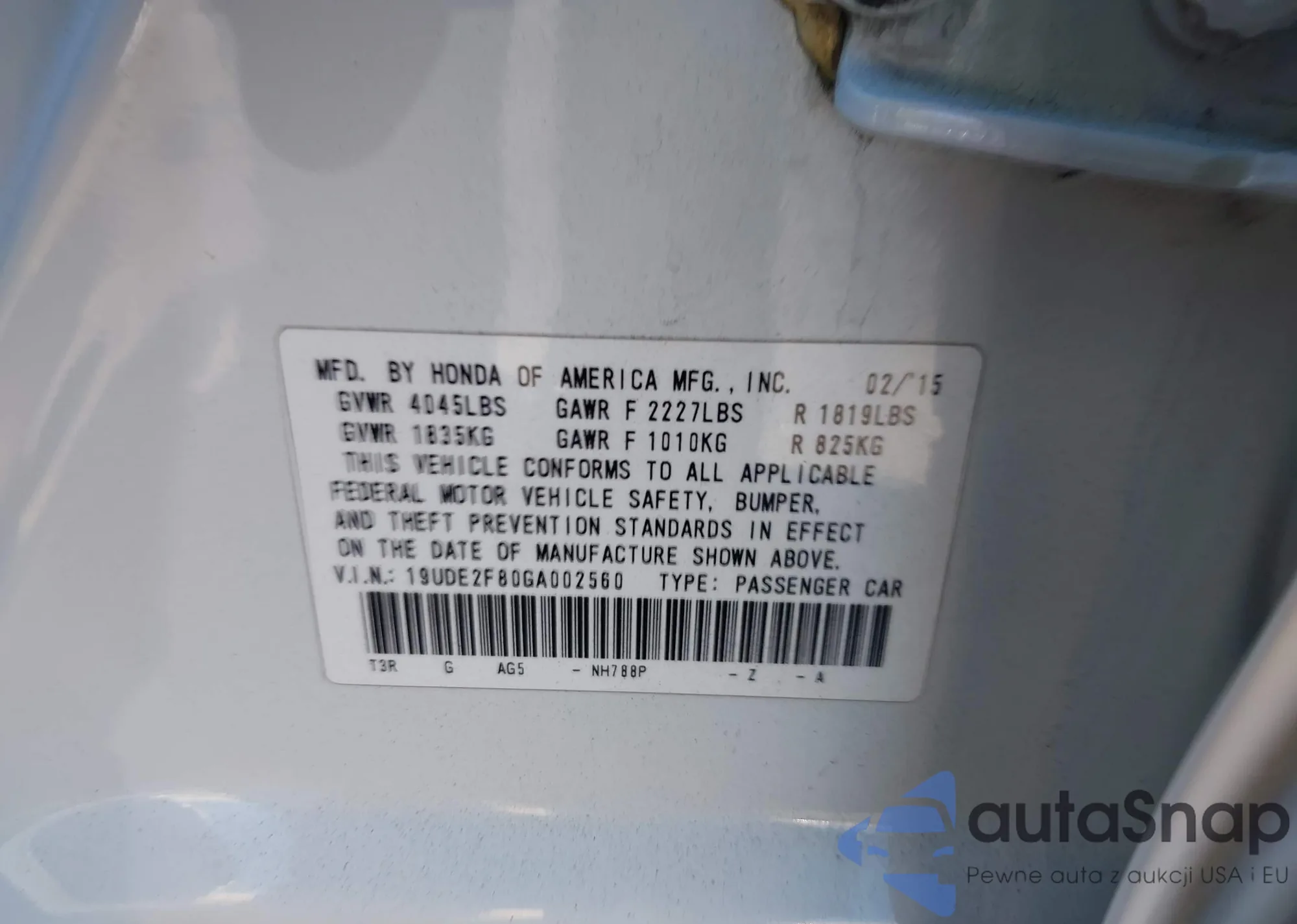 • VIN 19UDE2F80GA002560