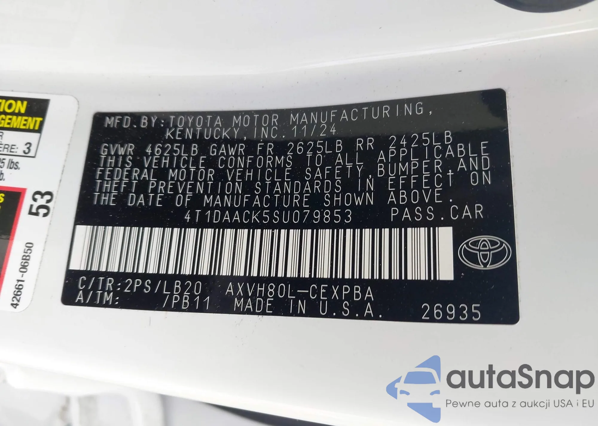 LOT: 43546111 VIN: JTDEPRAE8LJ059280