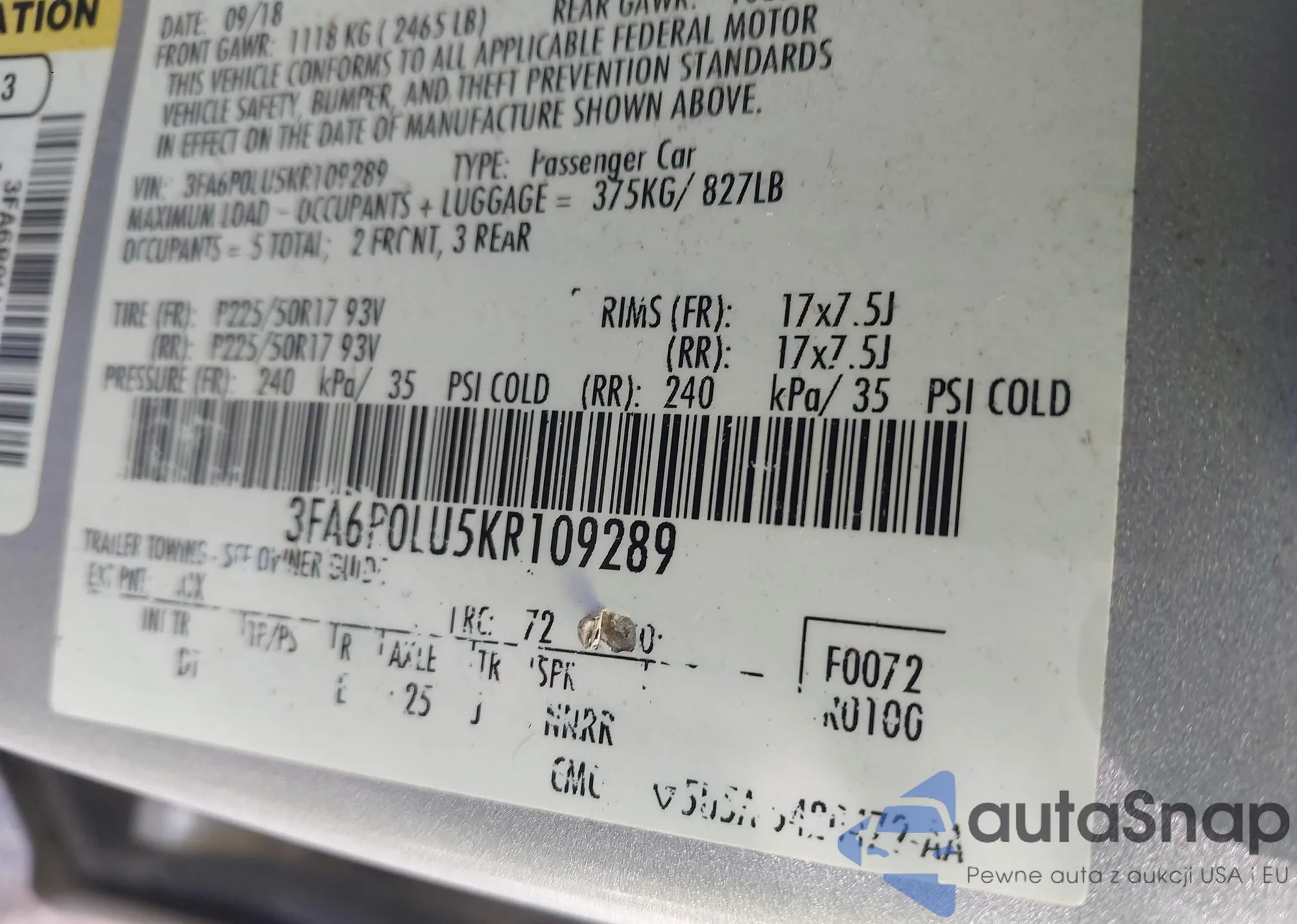 • VIN 3FA6P0LU5KR109289