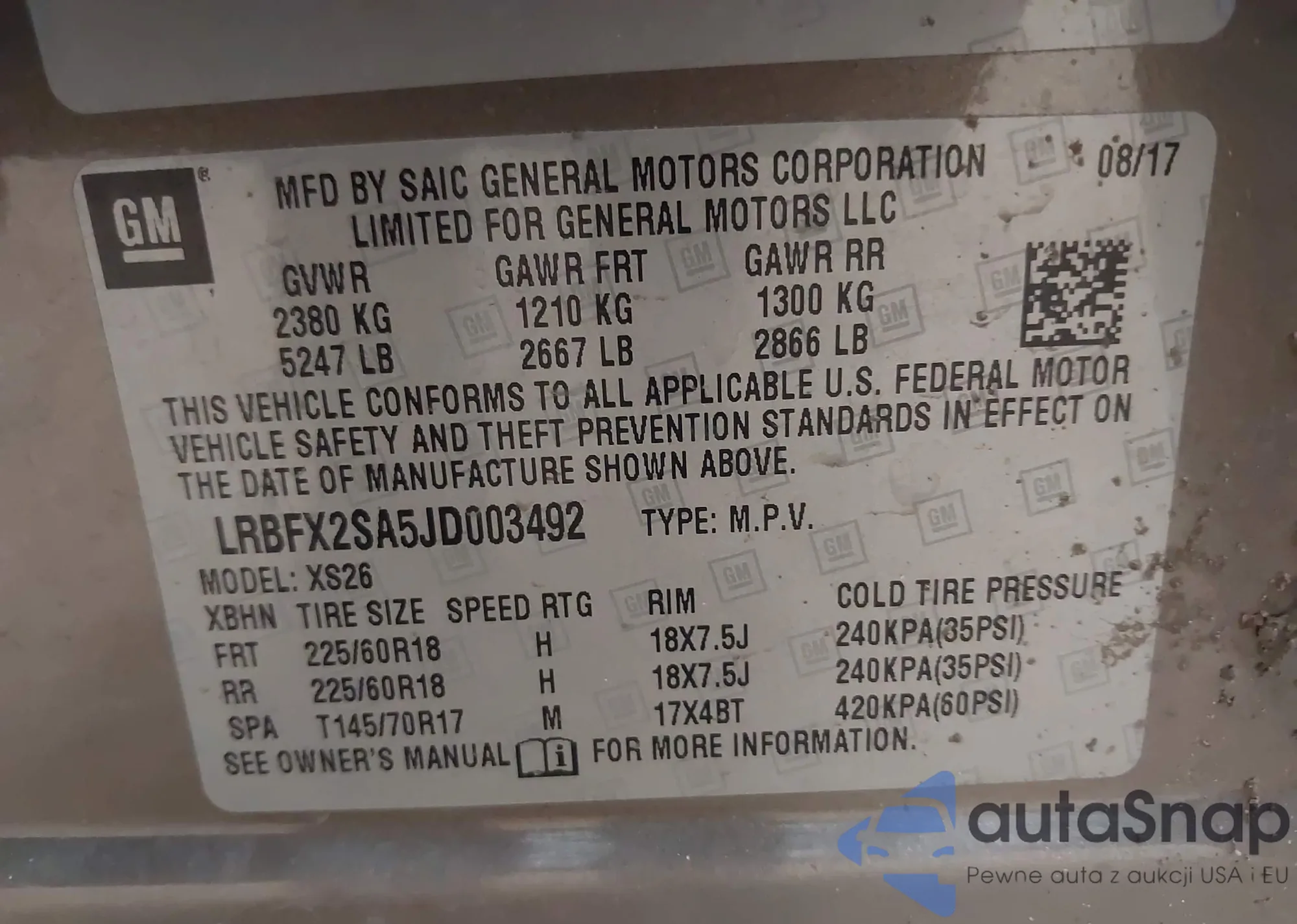 • VIN LRBFX2SA5JD003492