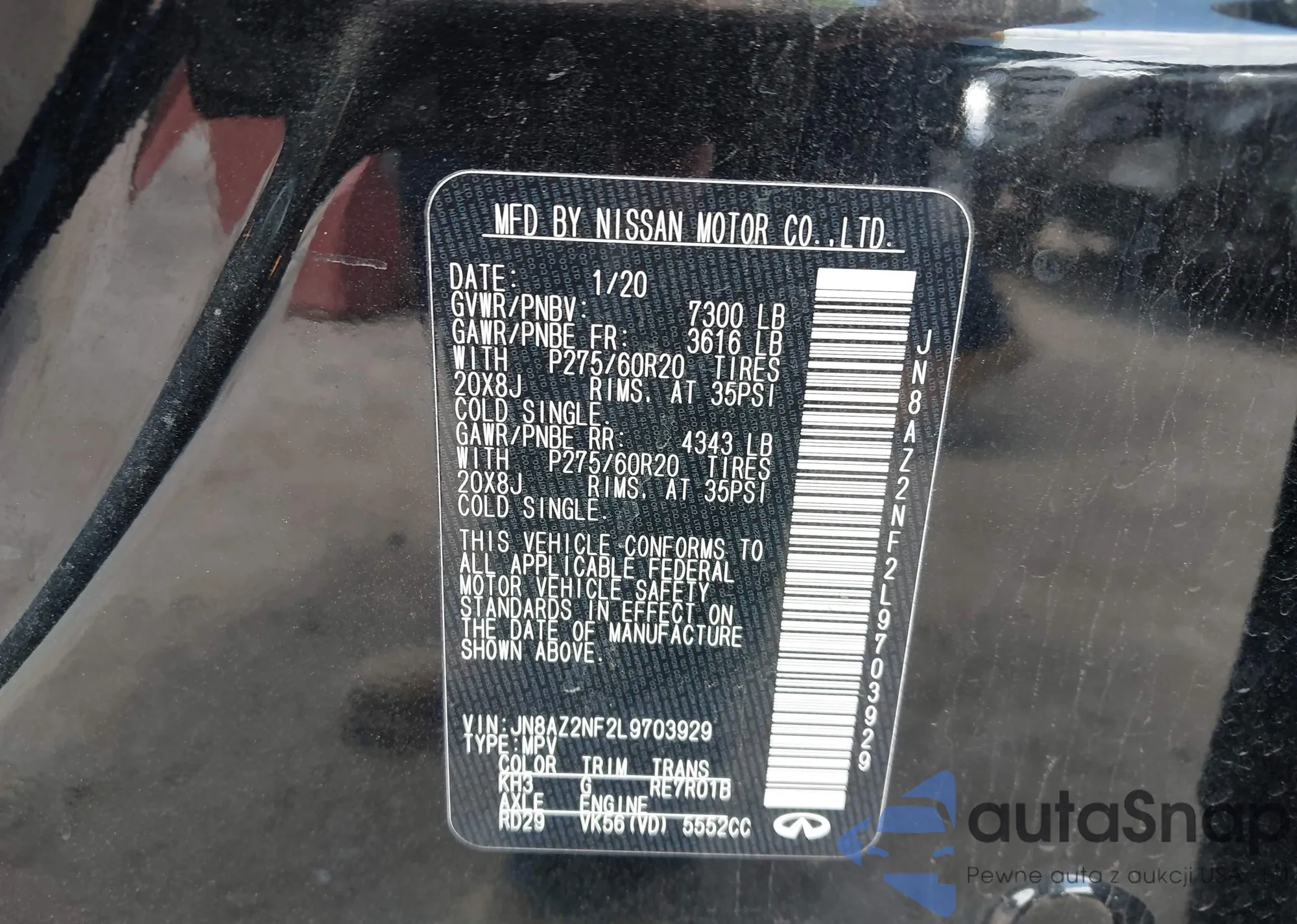 LOT: 43527291 VIN: JN8AF5MV8HT754574