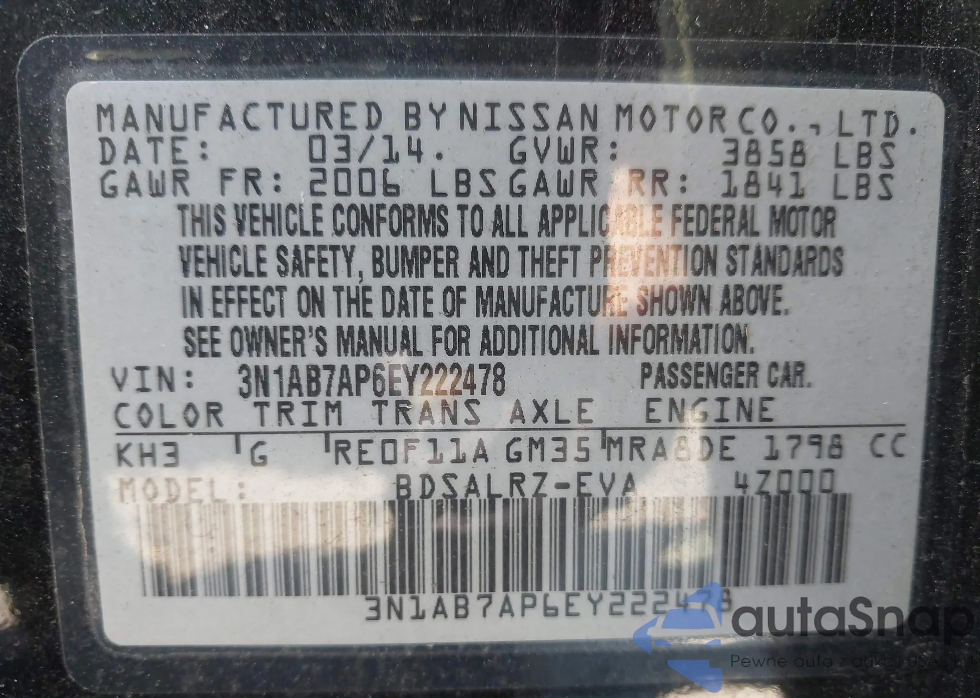 • VIN 3N1AB7AP6EY222478