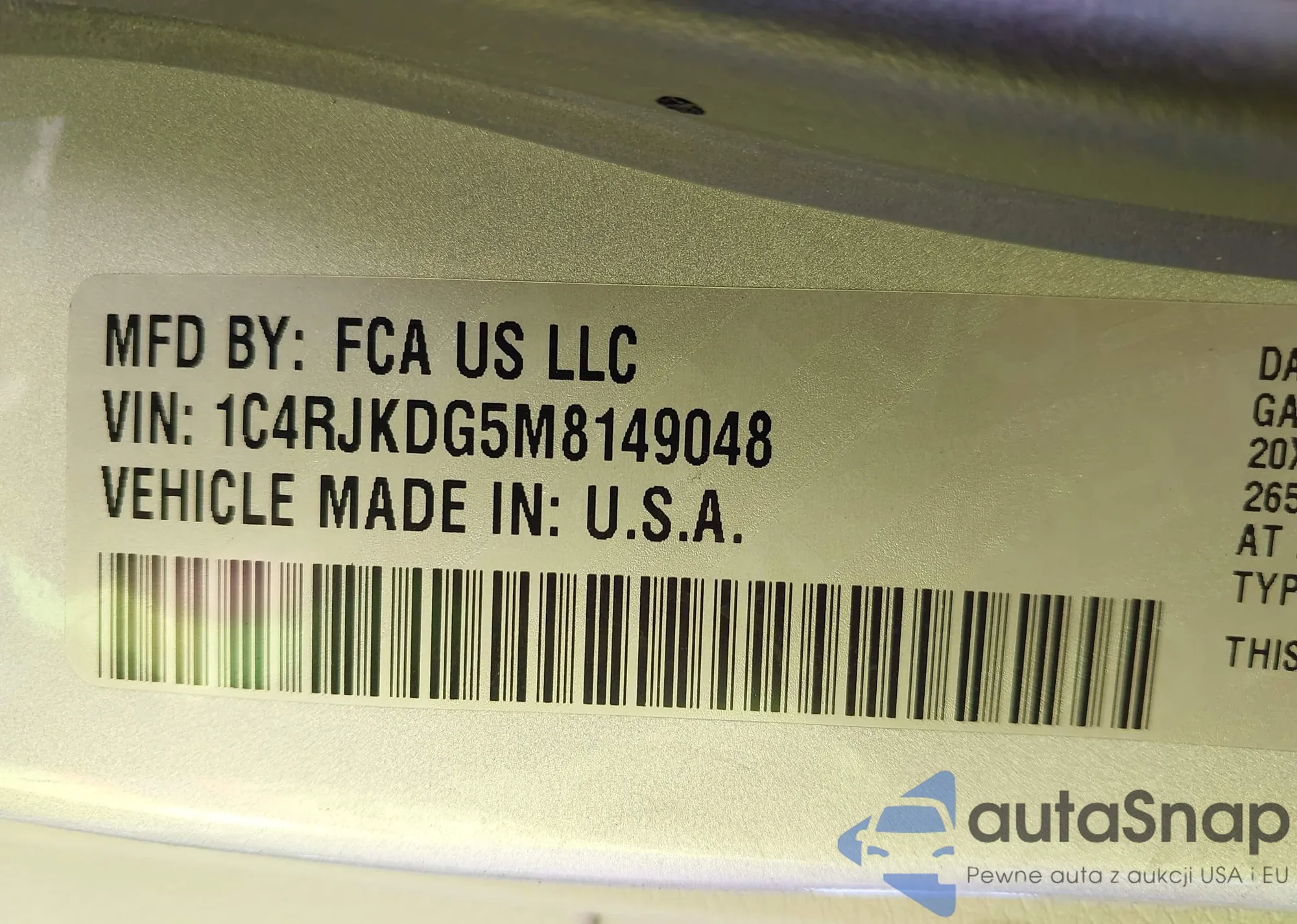 LOT: 42964178 VIN: 1C4PJMCB8EW198900