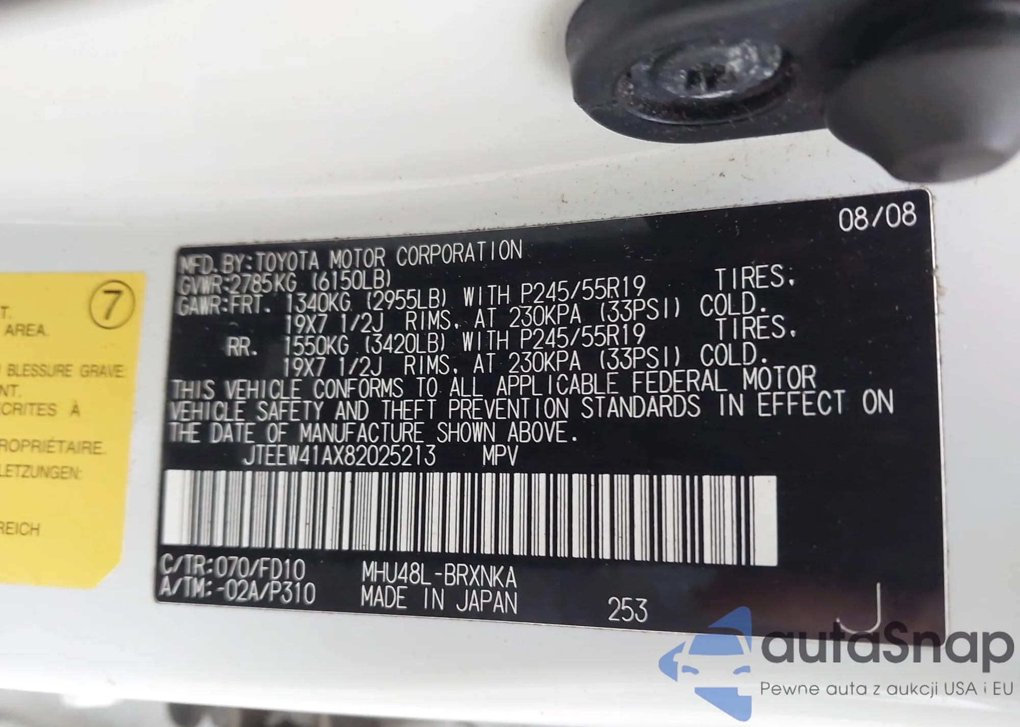 LOT: 43524909 VIN: JTEEW41AX82025213