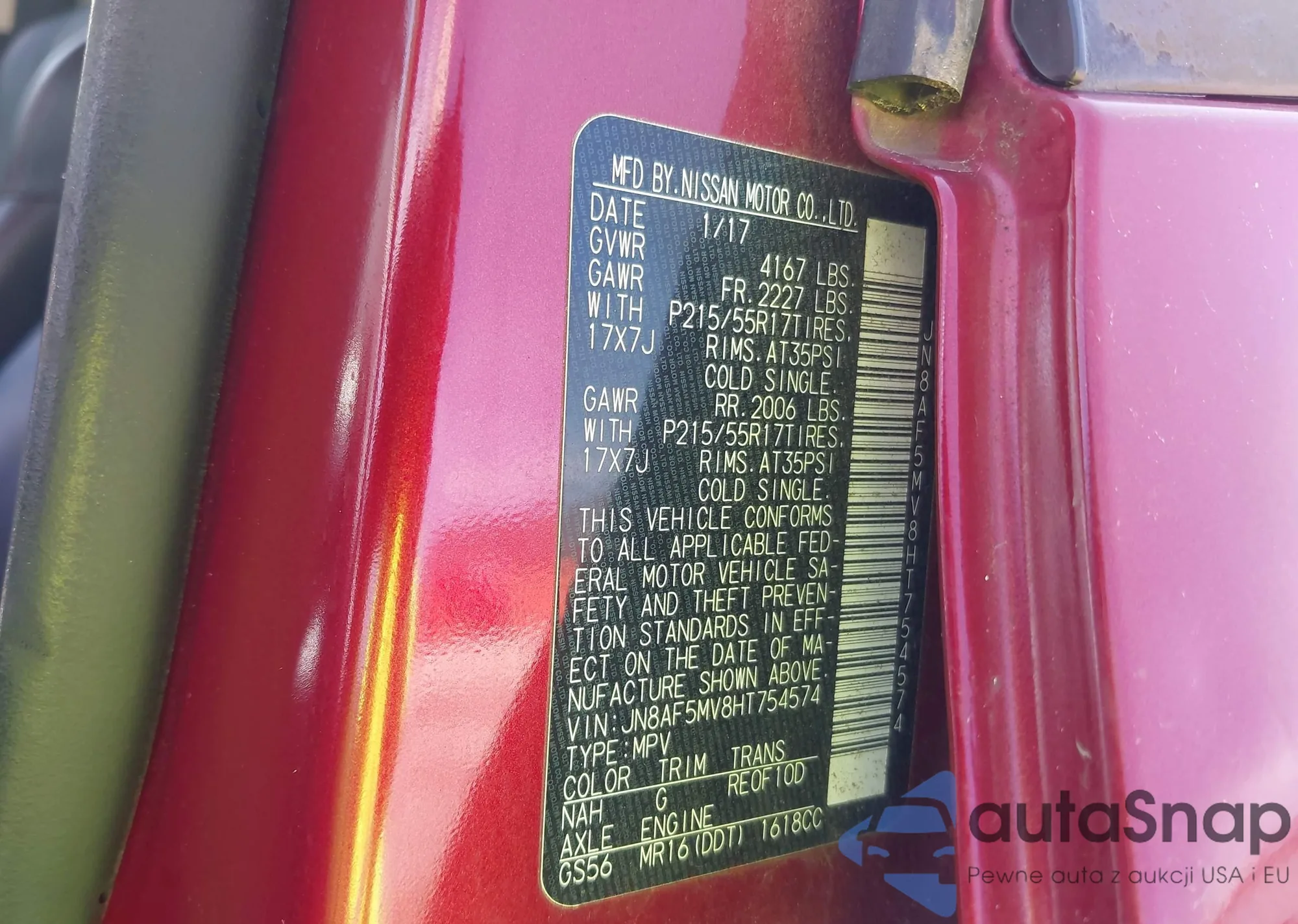 • VIN JN8AF5MV8HT754574