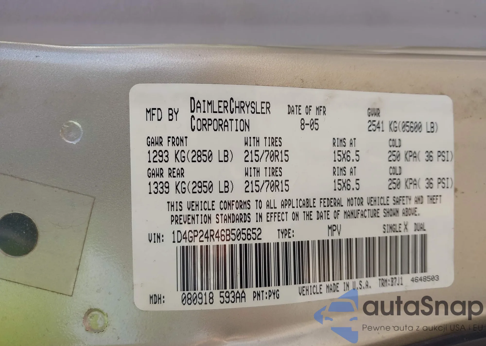 LOT: 43570918 VIN: 1D4GP24R46B505652