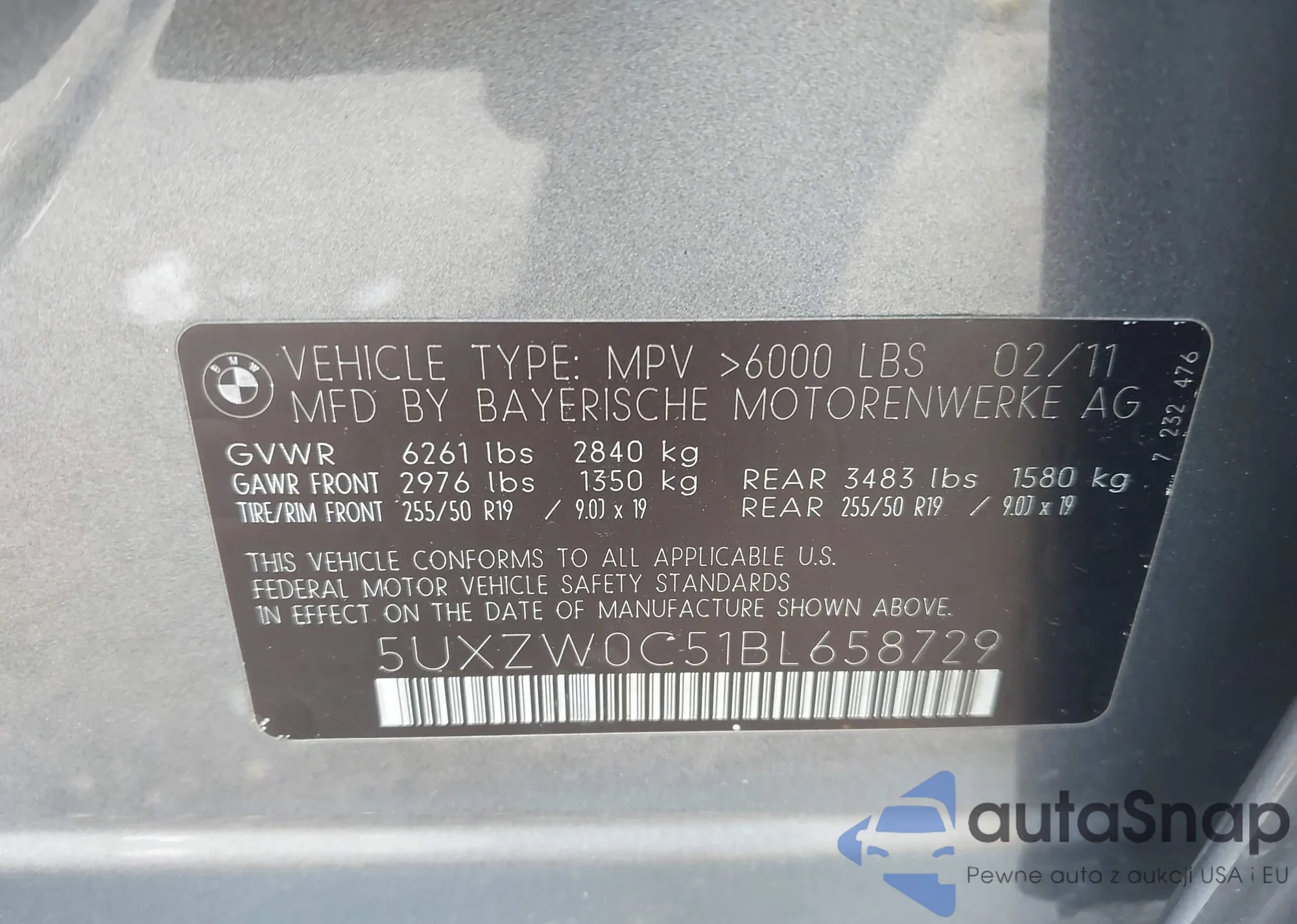• VIN 5UXZW0C51BL658729