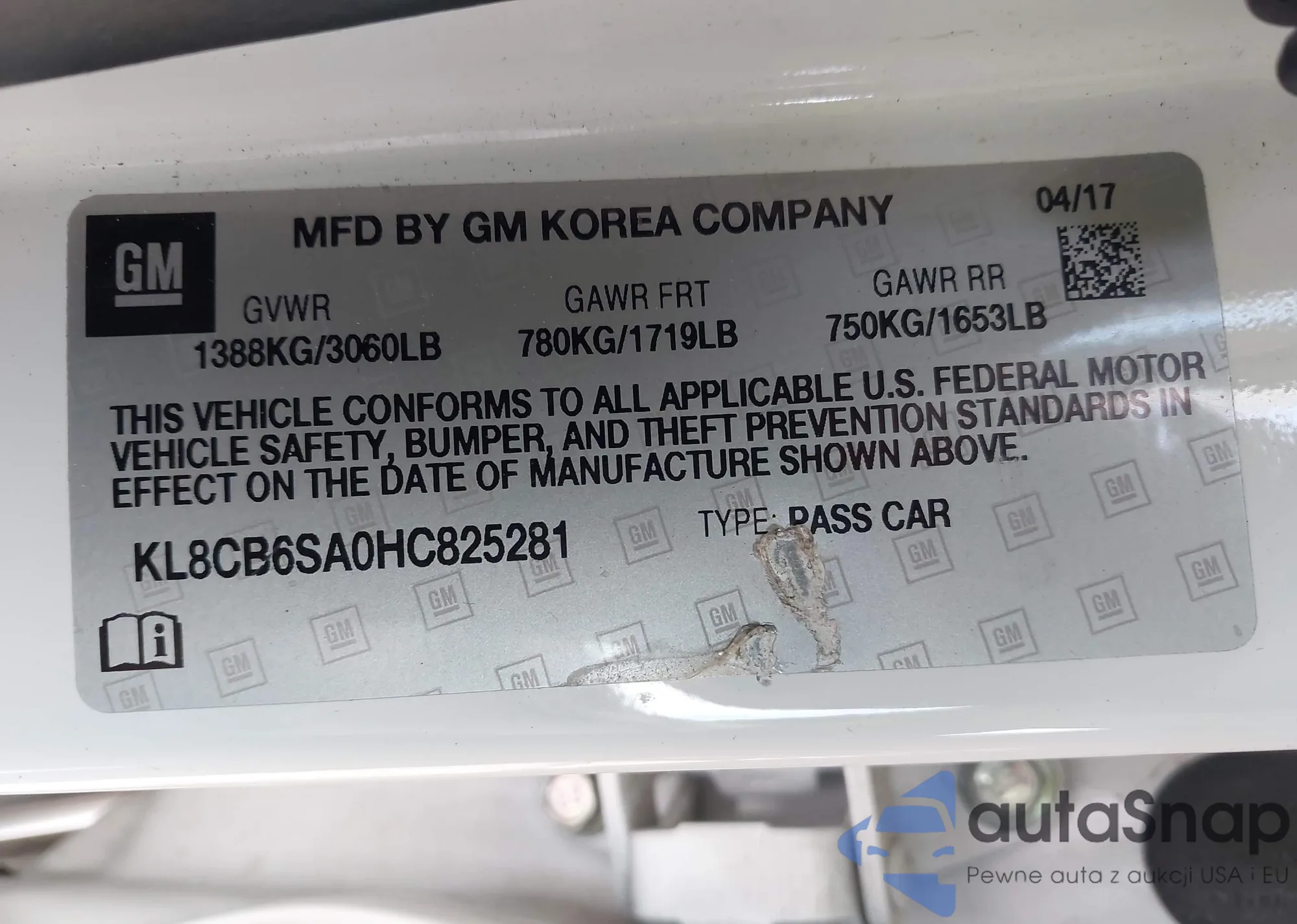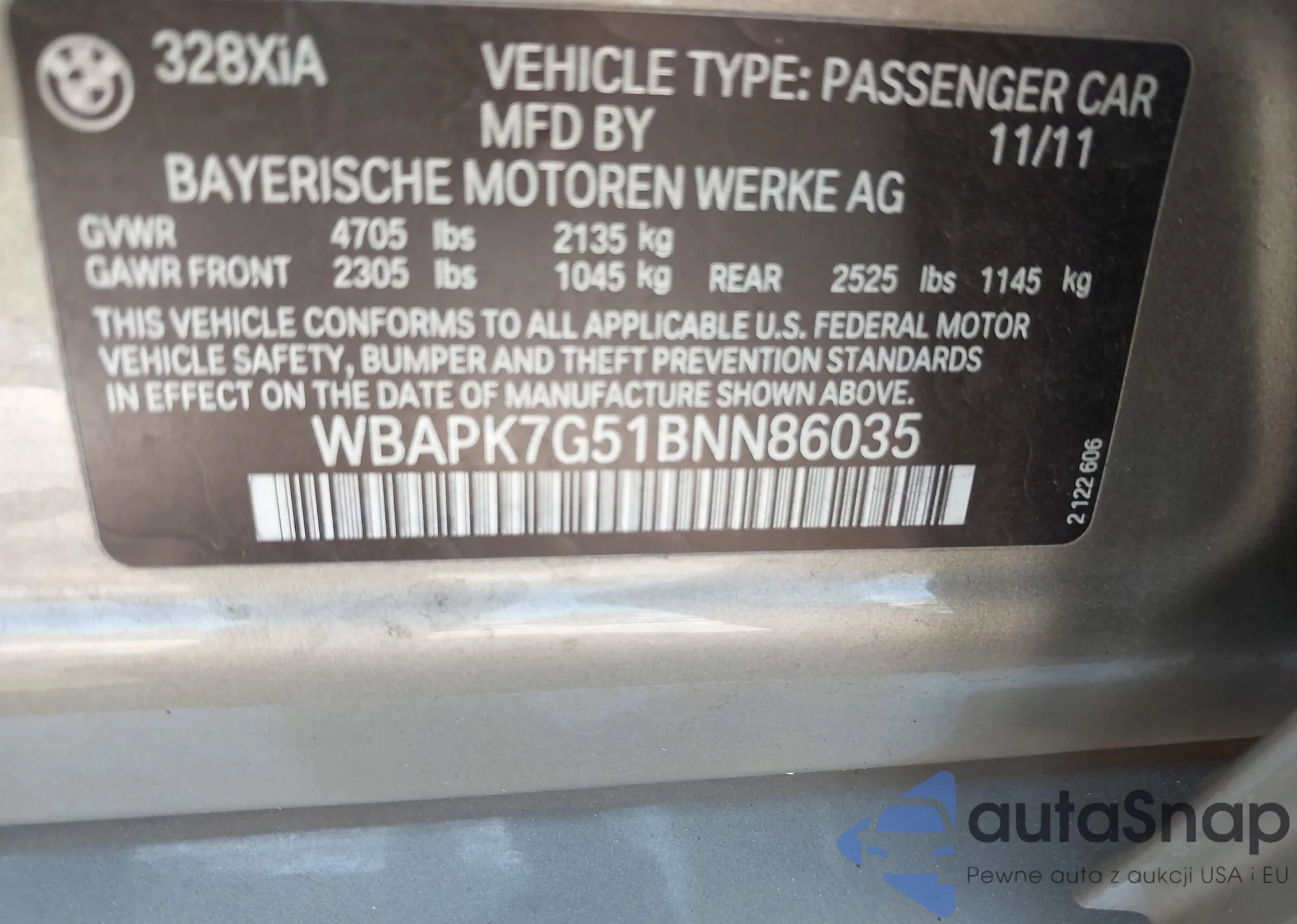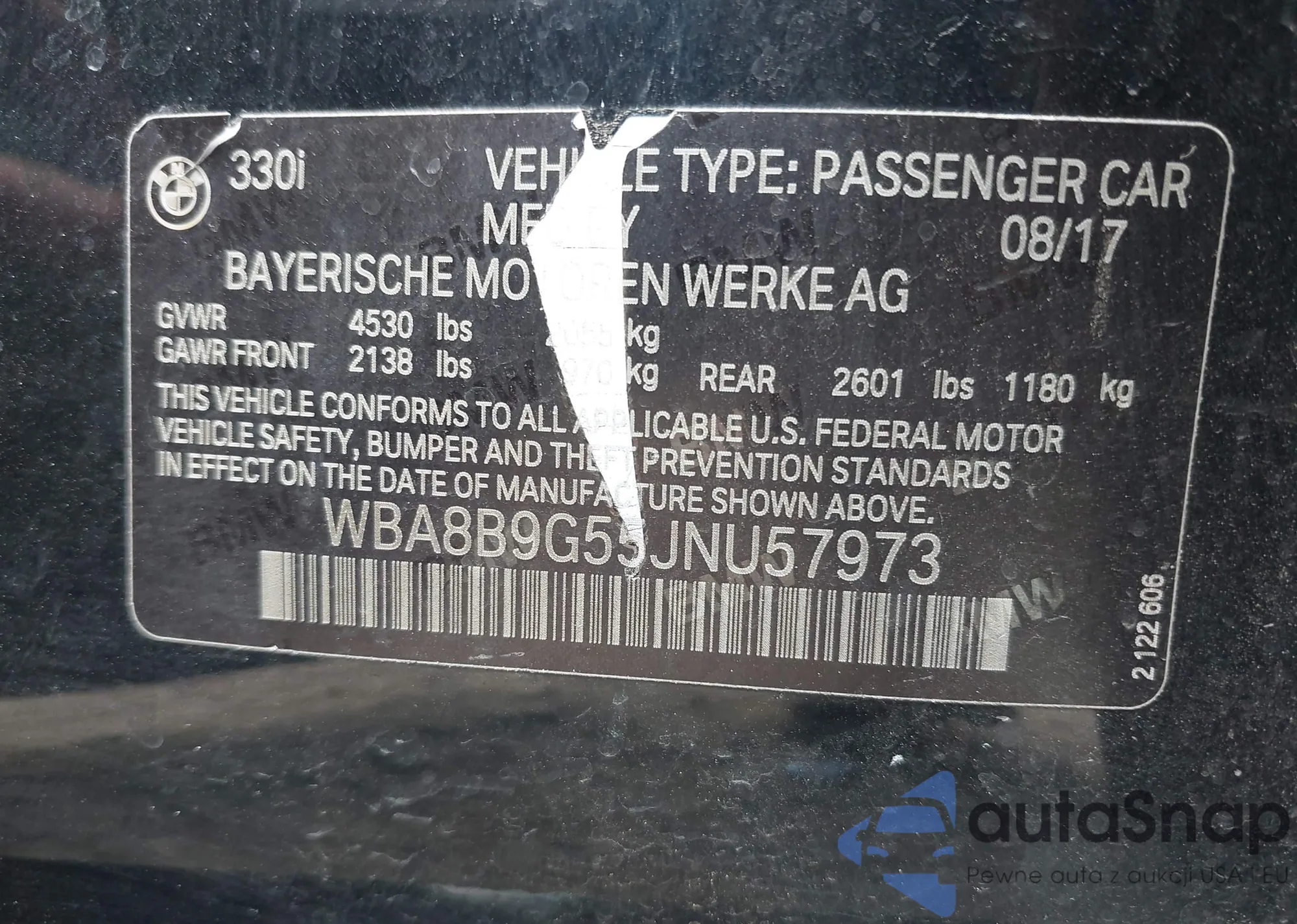 LOT: 43192784 VIN: WBA8B9G55JNU57973