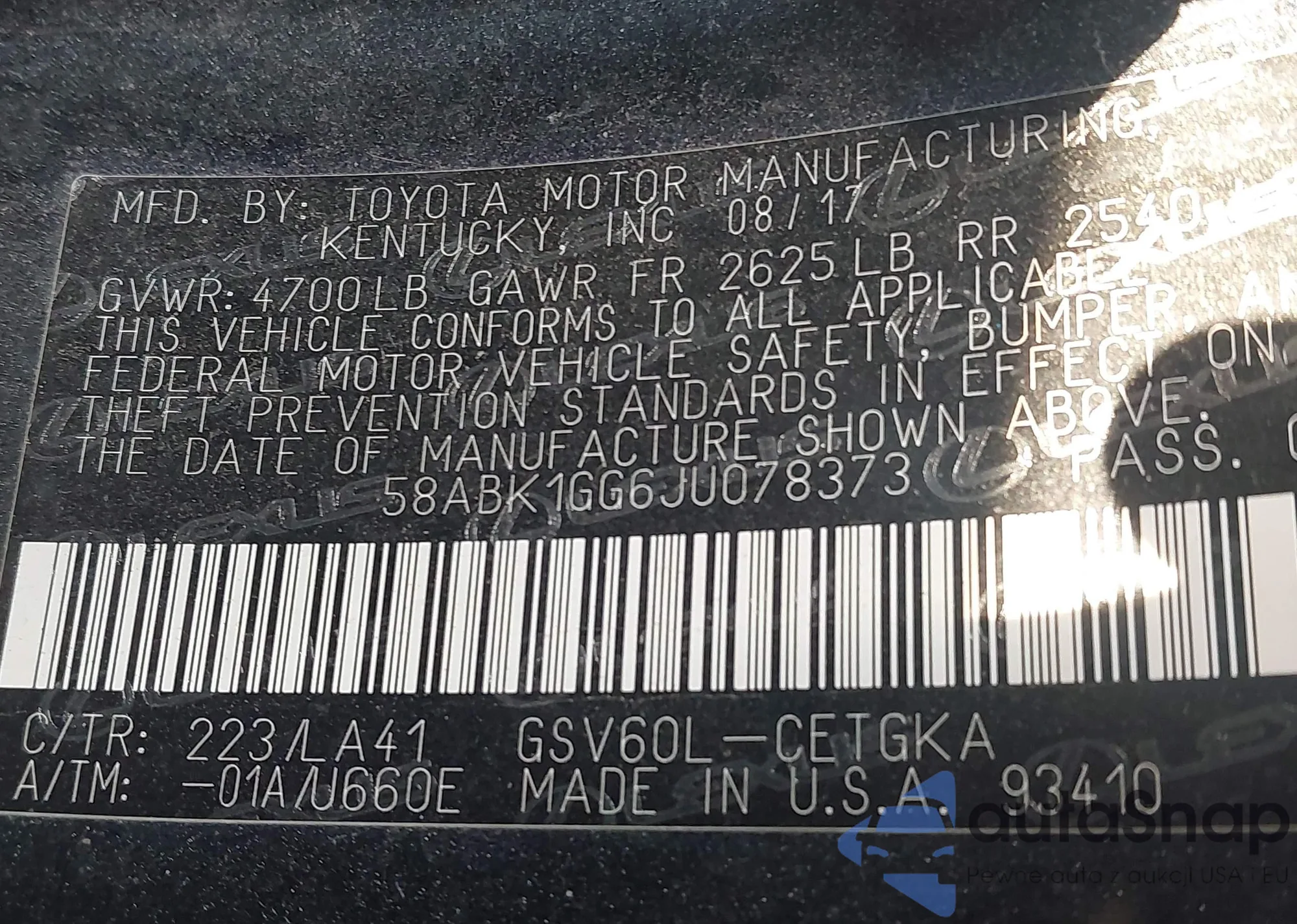 • VIN 58ABK1GG6JU078373