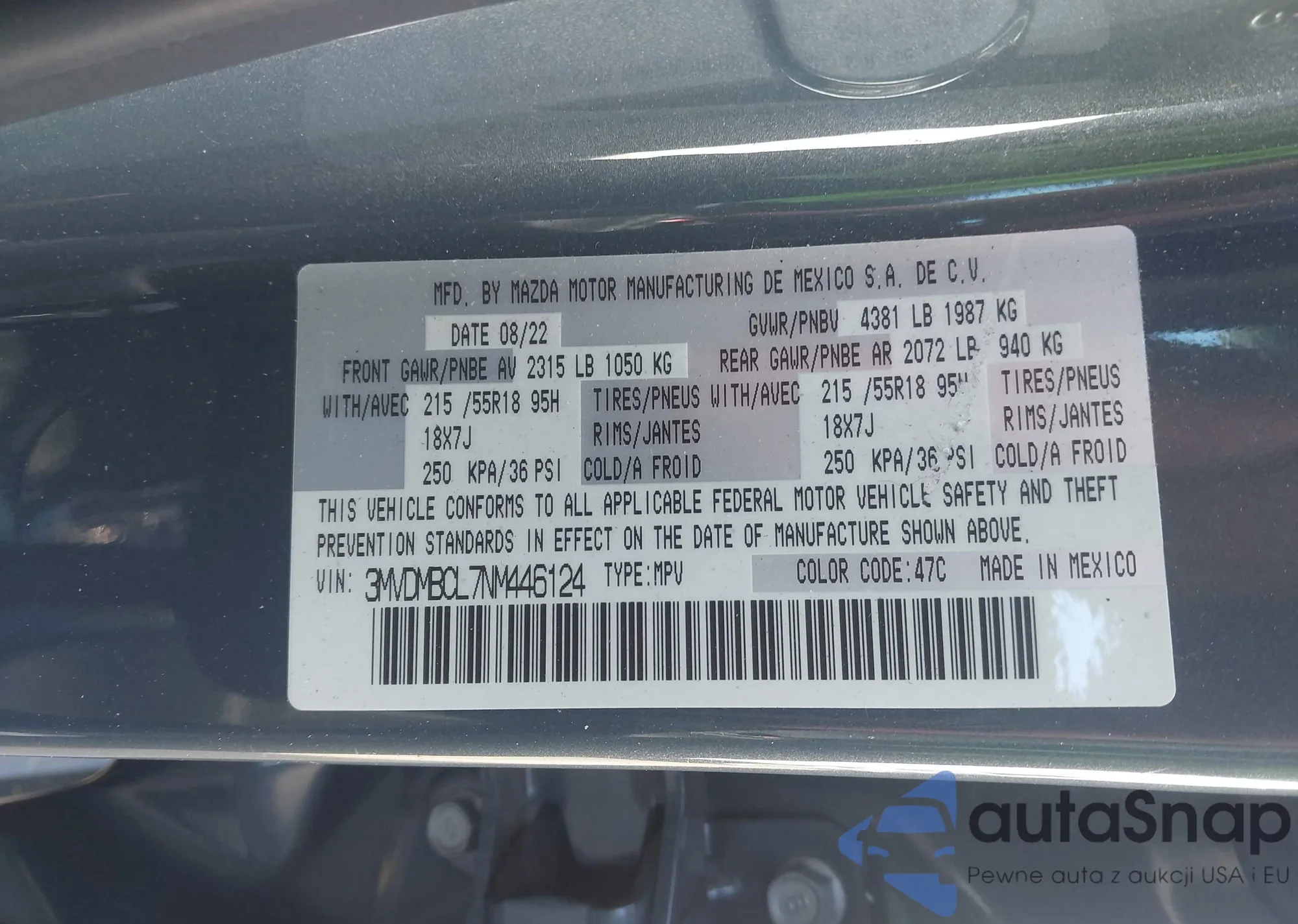 • VIN 3MVDMBCL7NM446124