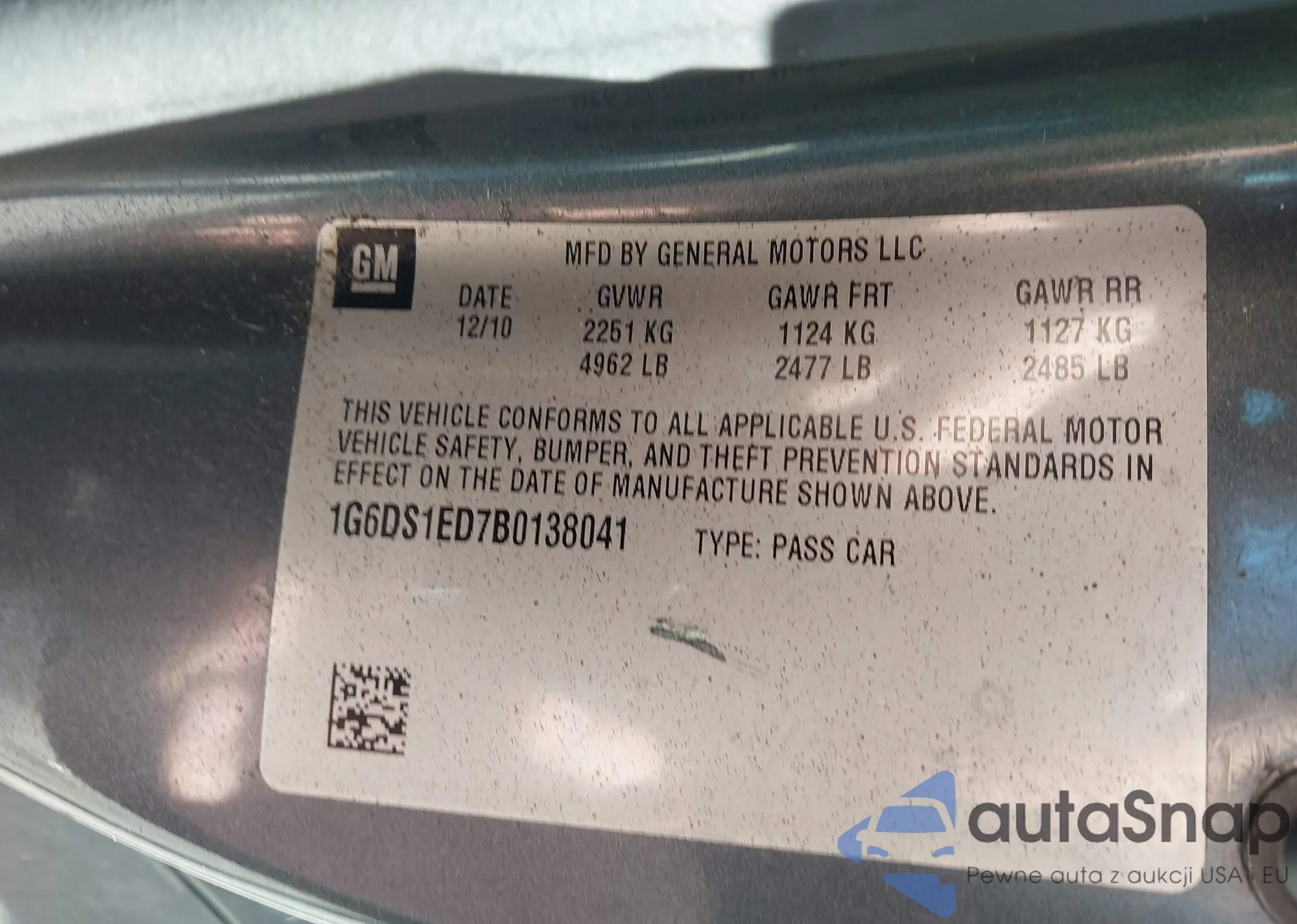 LOT: 43368350 VIN: 1G6DS1ED7B0138041
