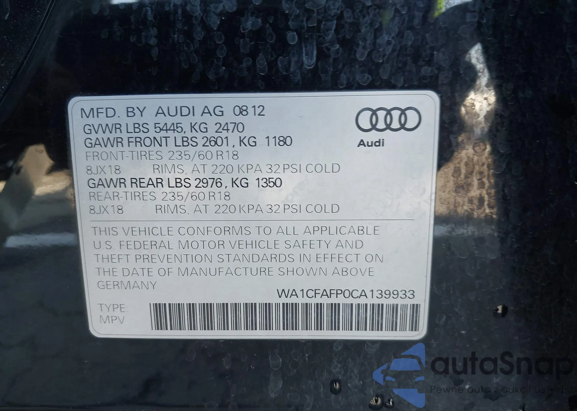 • VIN WA1UFAFL1DA221009