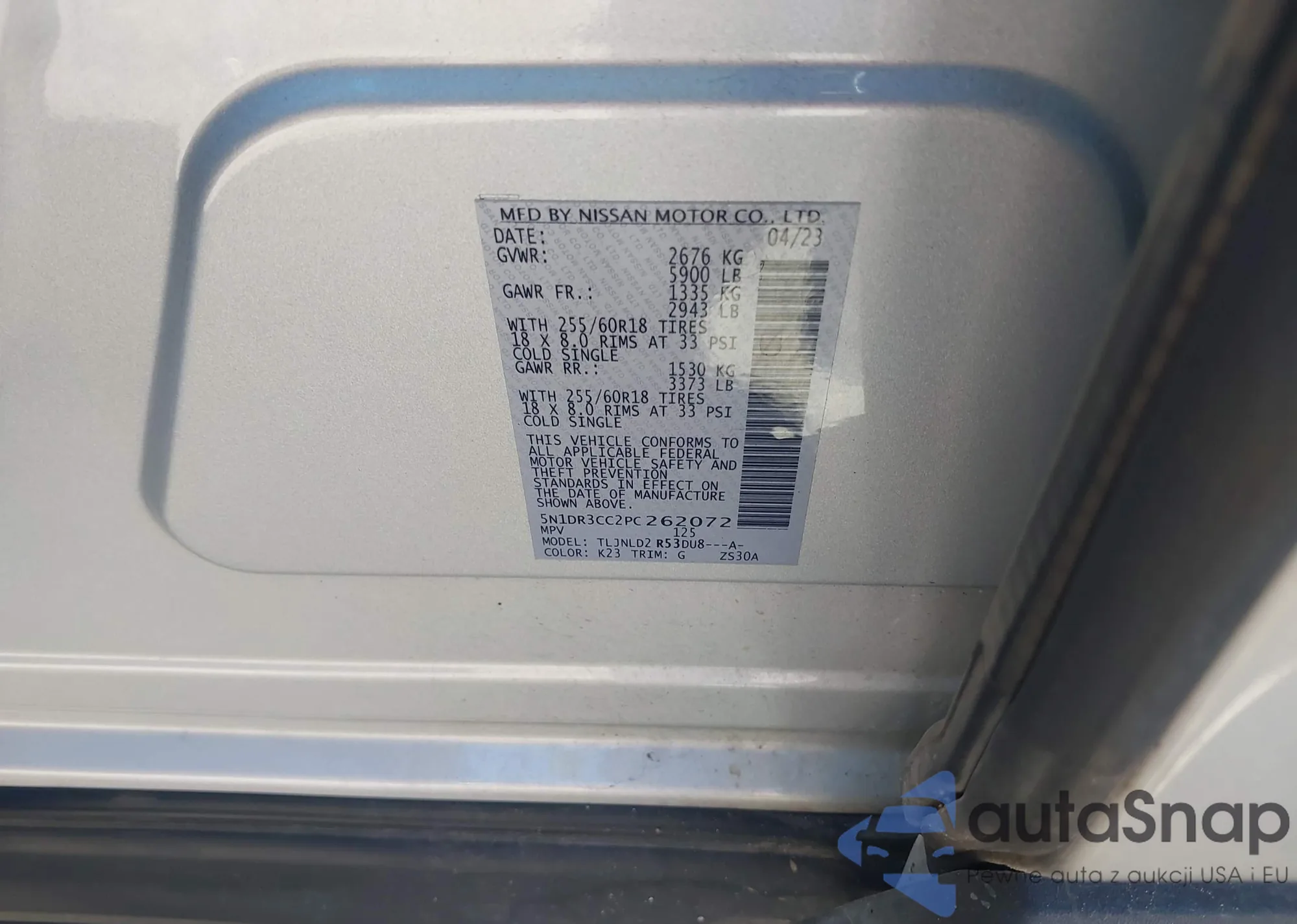 LOT: 43460338 VIN: 5N1DR3CC2PC262072