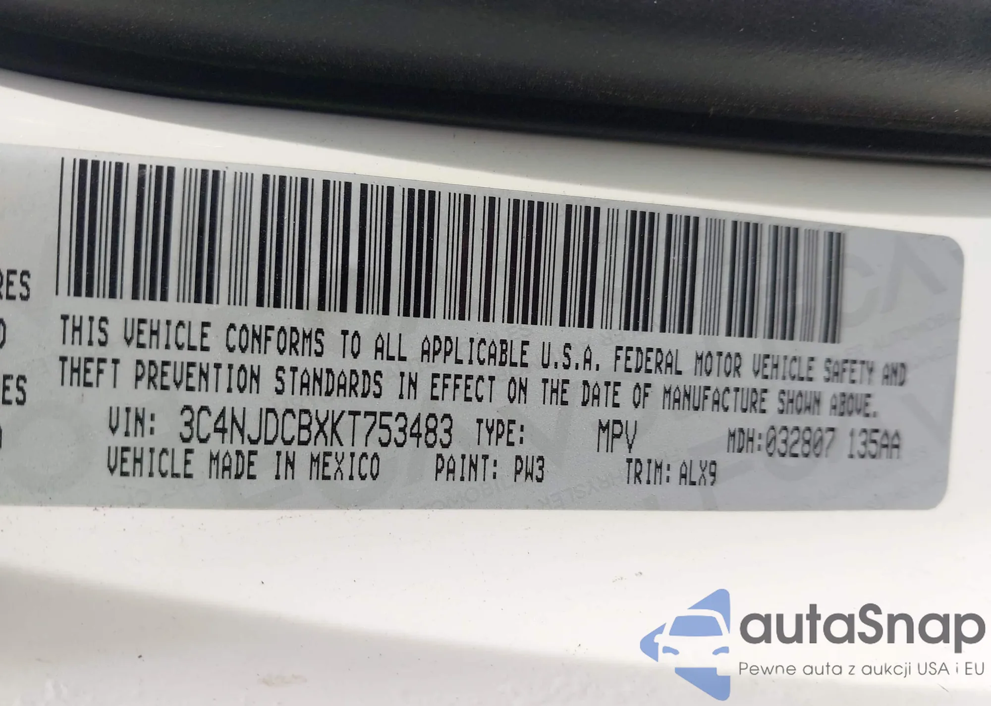 • VIN 3C4NJDCBXKT753483