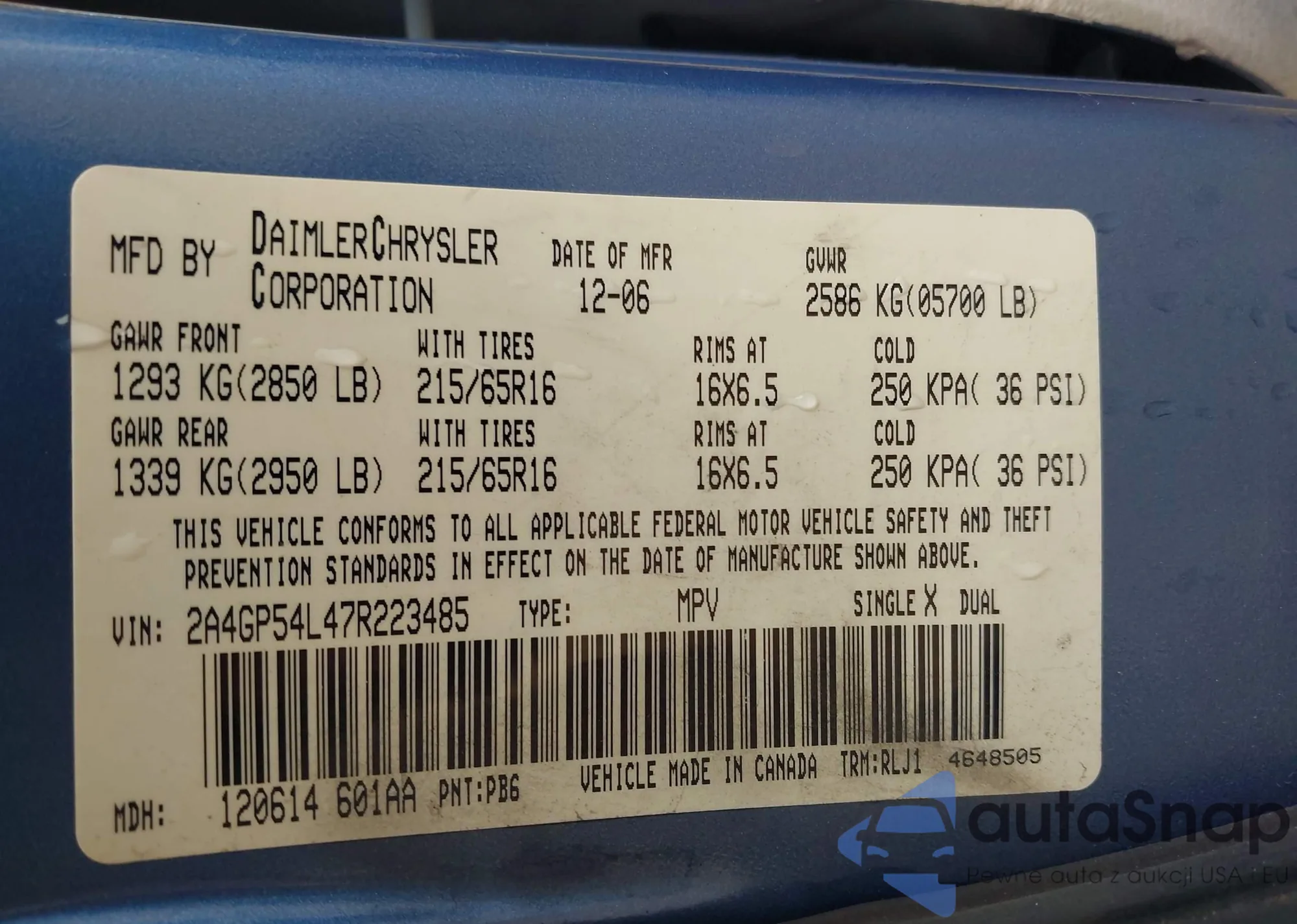 LOT: 43517167 VIN: 2A4GP54L47R223485
