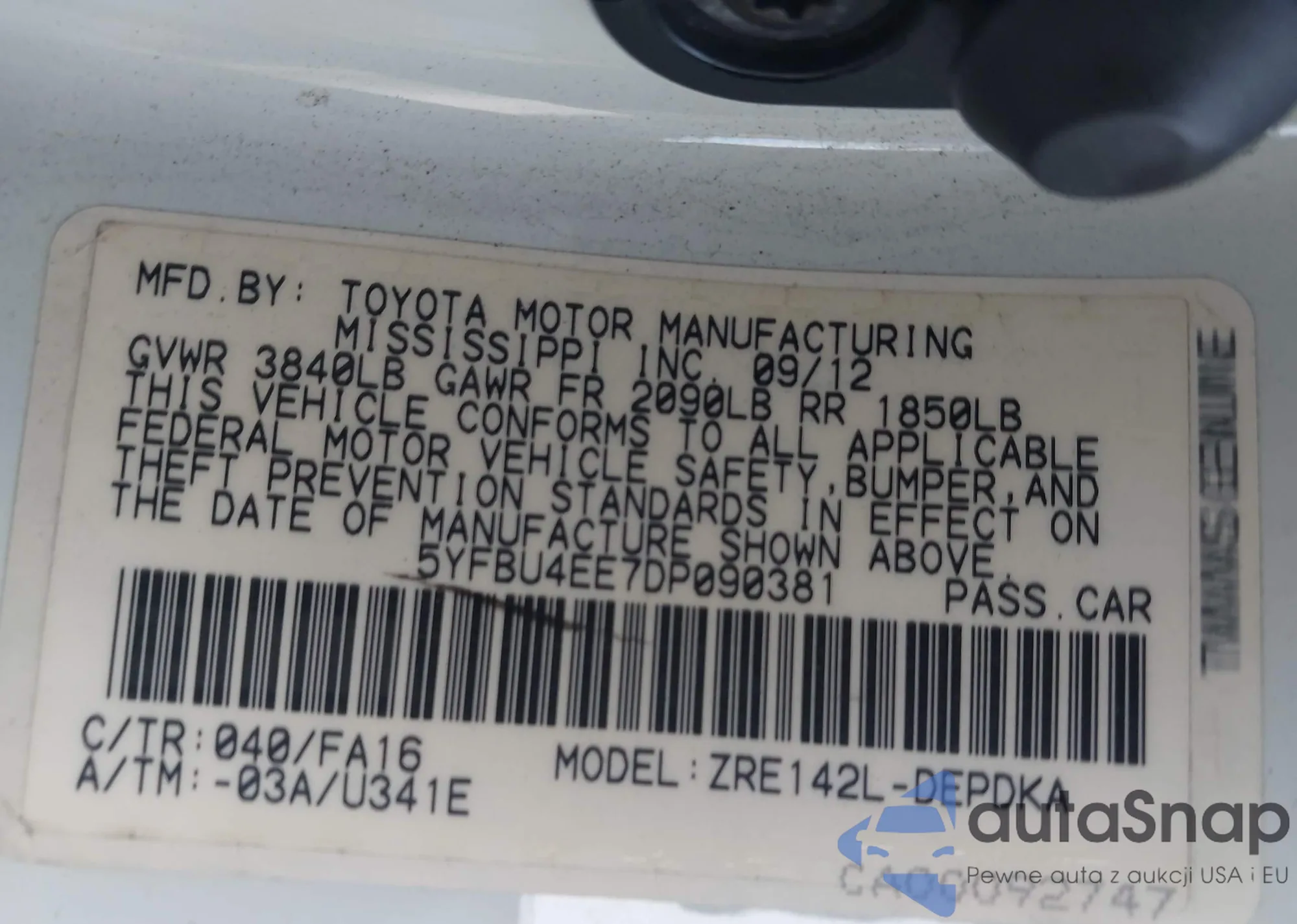• VIN 5YFBU4EE7DP090381