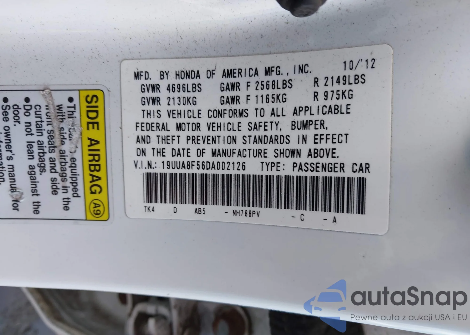 • VIN 19UUA8F56DA002126