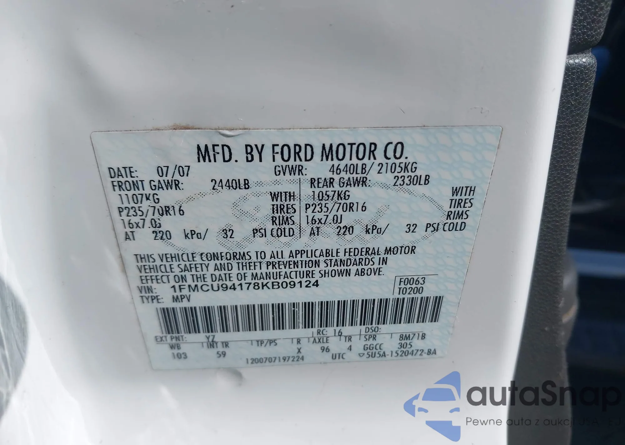 • VIN 1FMSK8DH1MGB20299