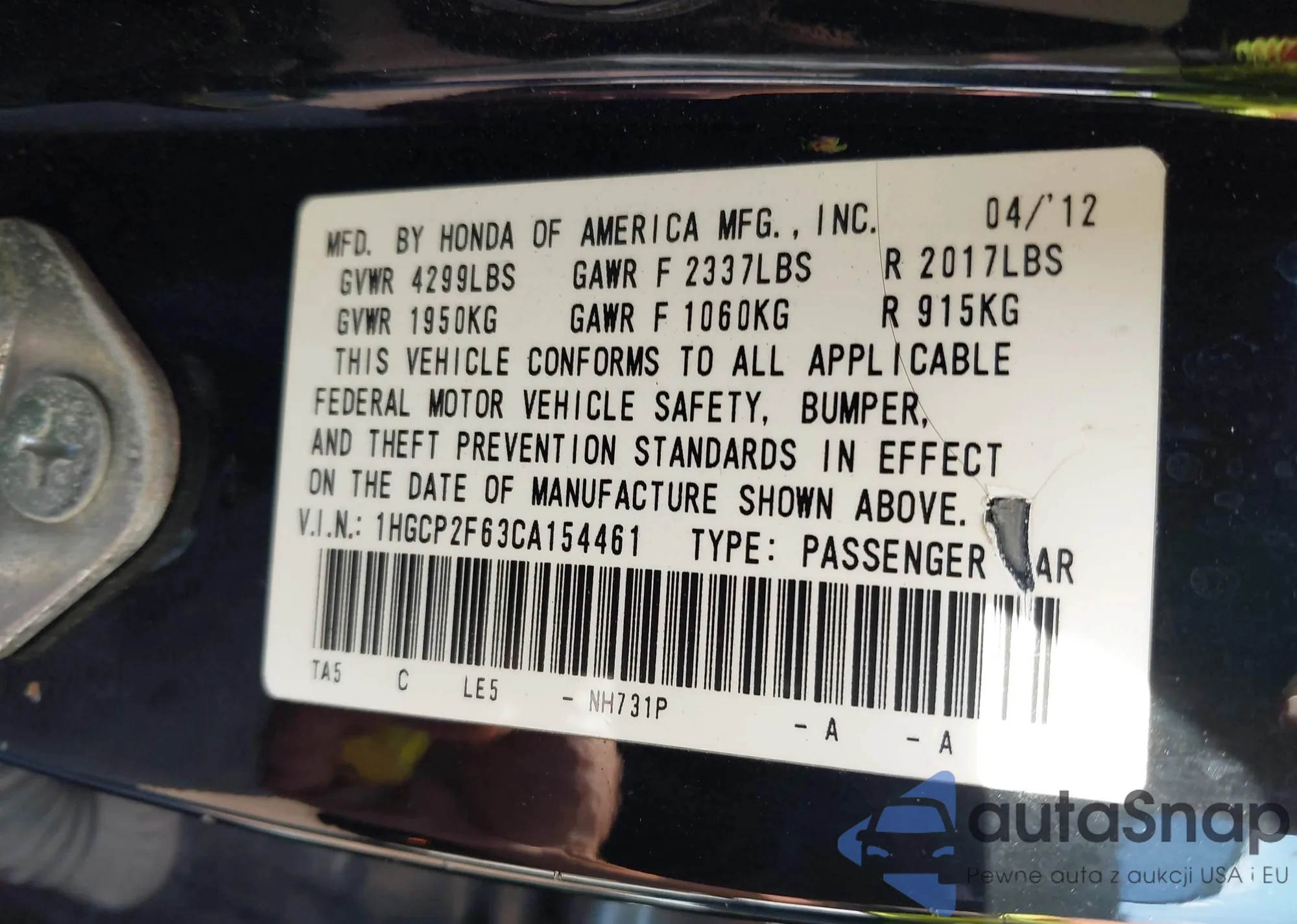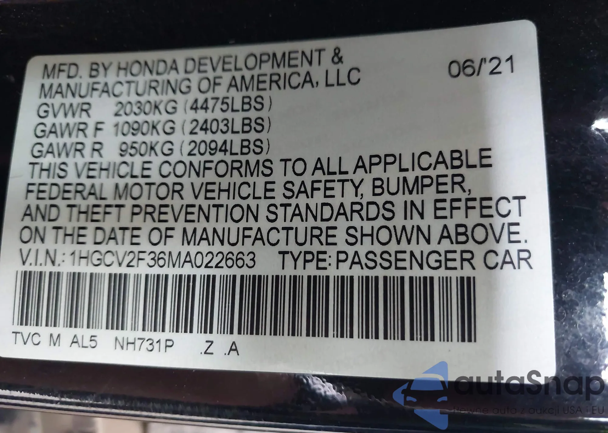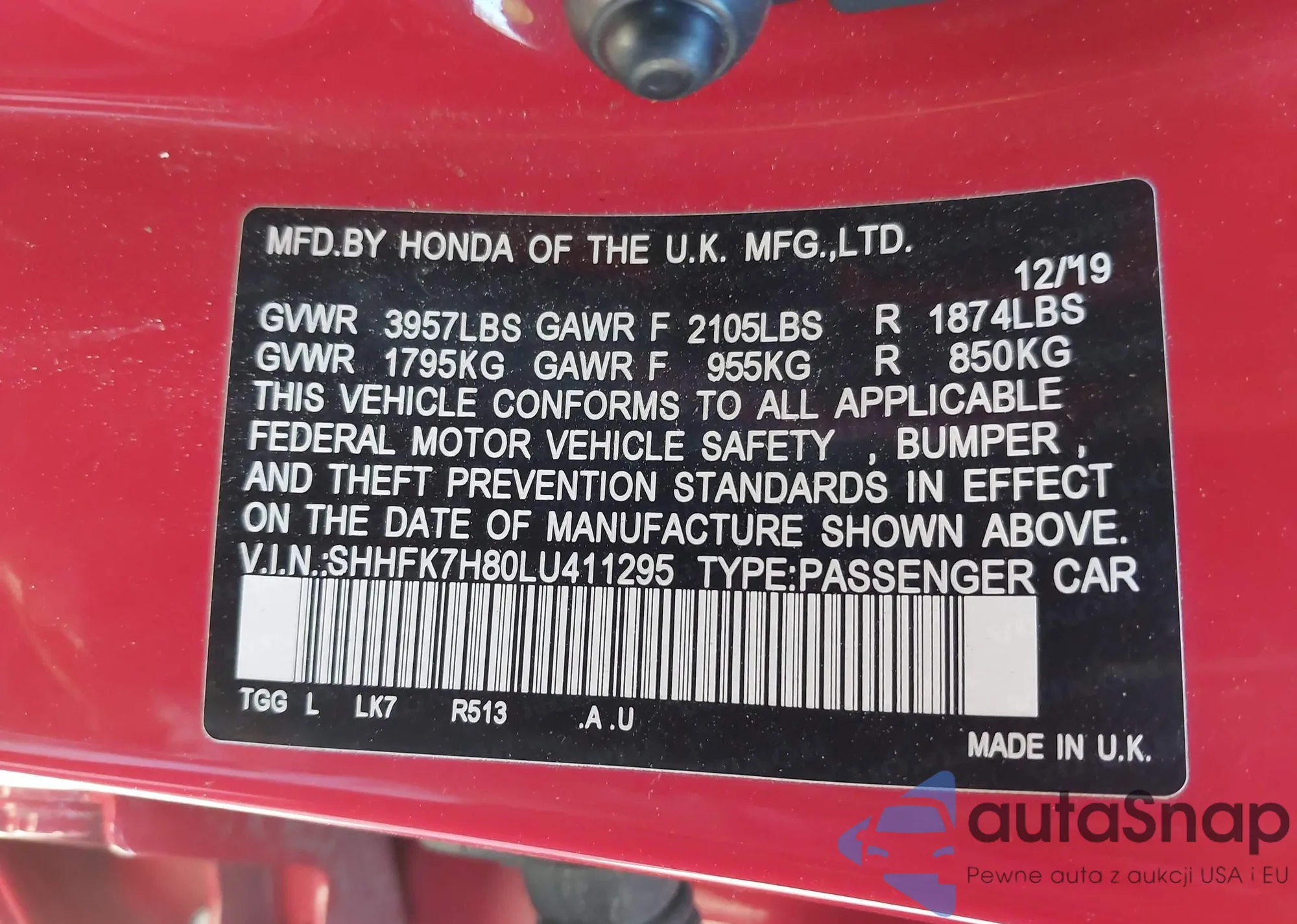 LOT: 43492839 VIN: 1HGCV1F34KA006369