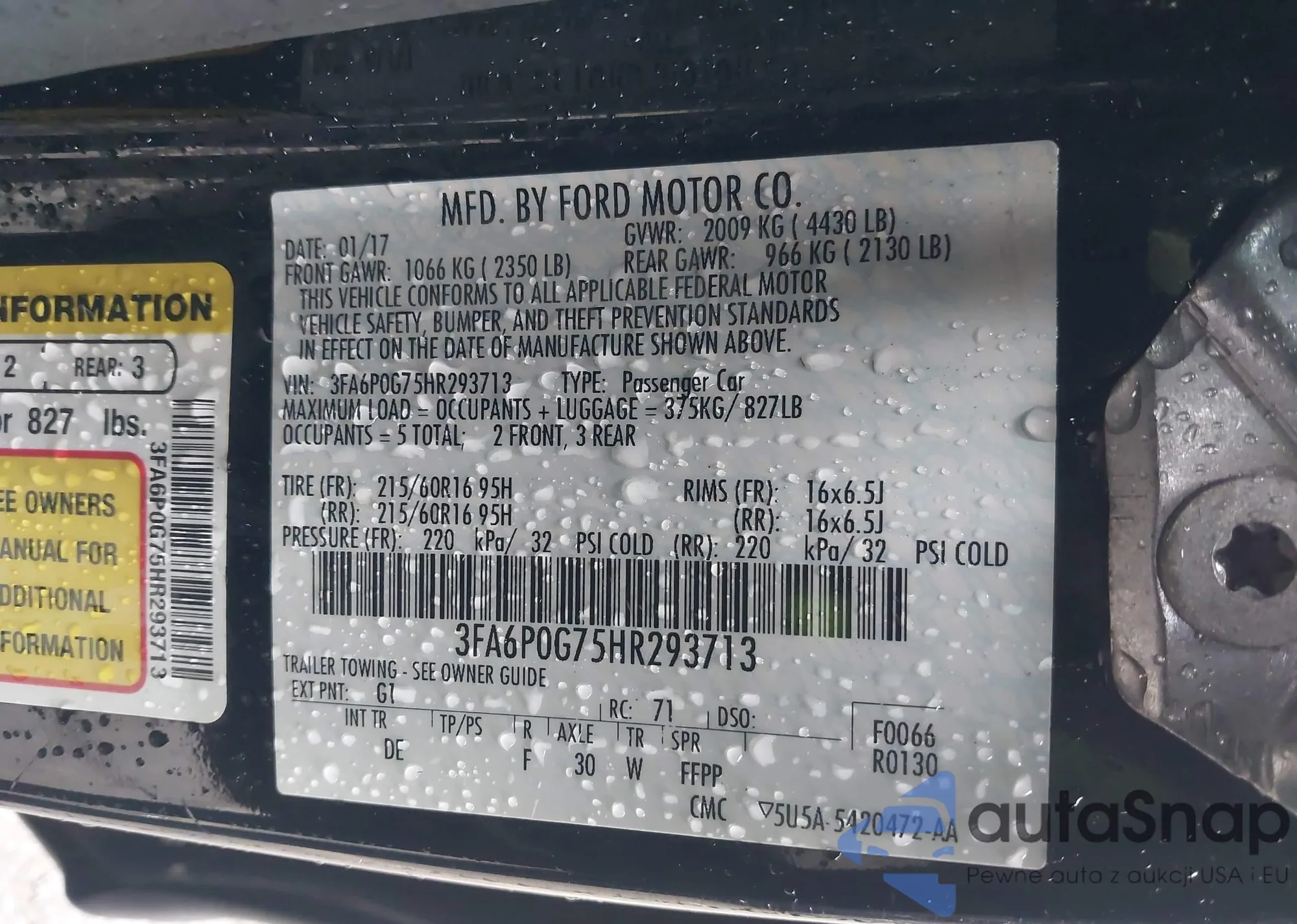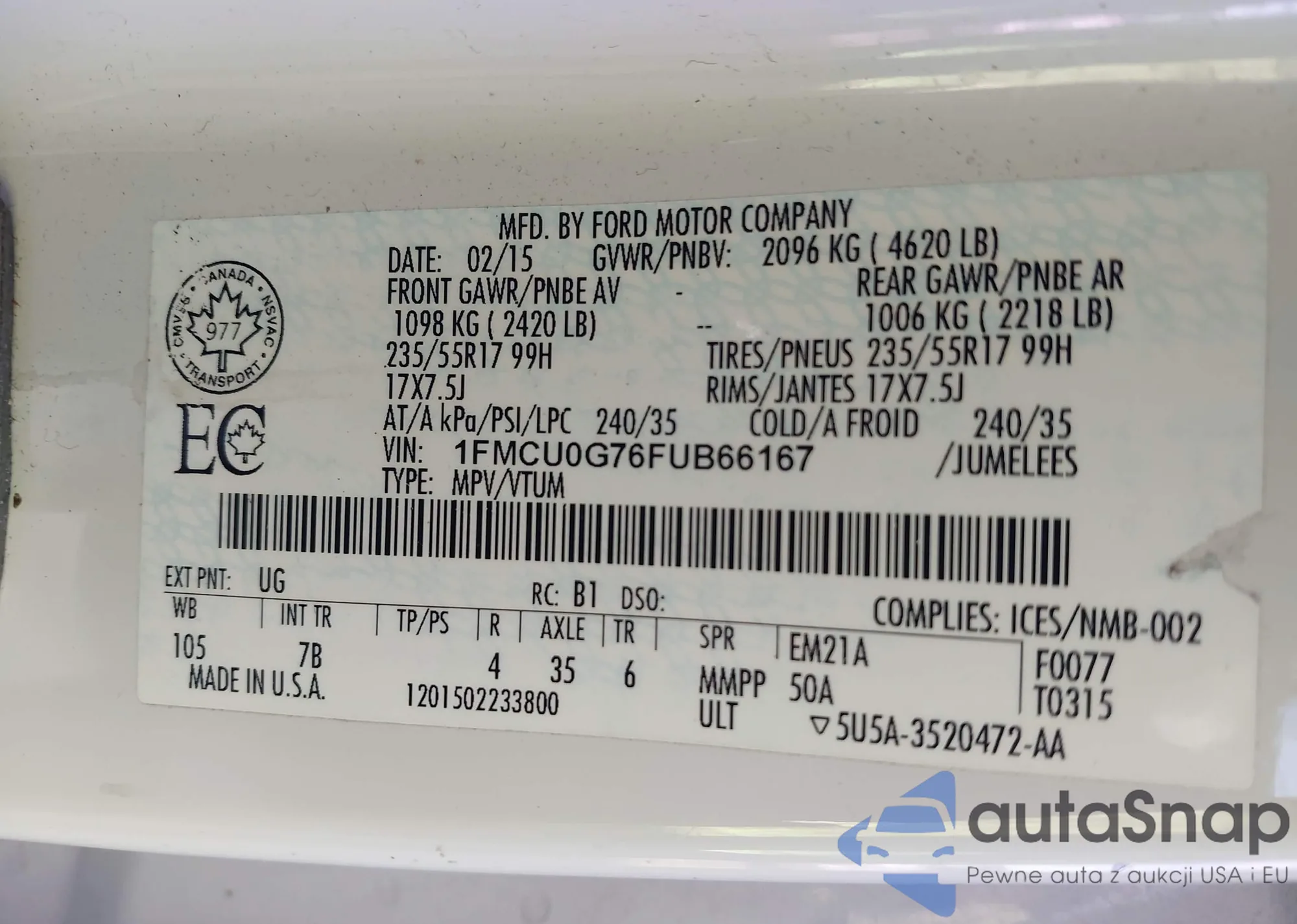 LOT: 43506375 VIN: 1FMCU0G76FUB66167