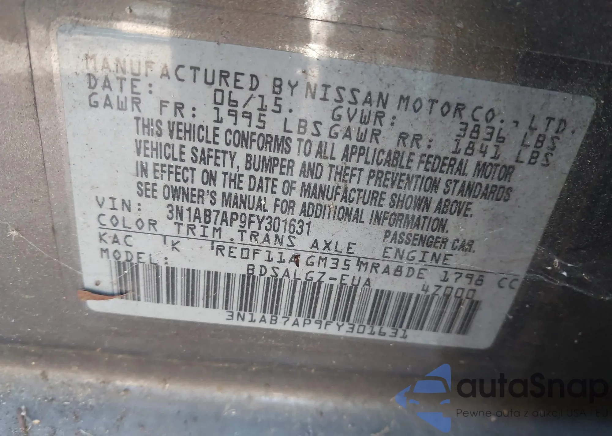 • VIN 3N1AB7AP9FY301631