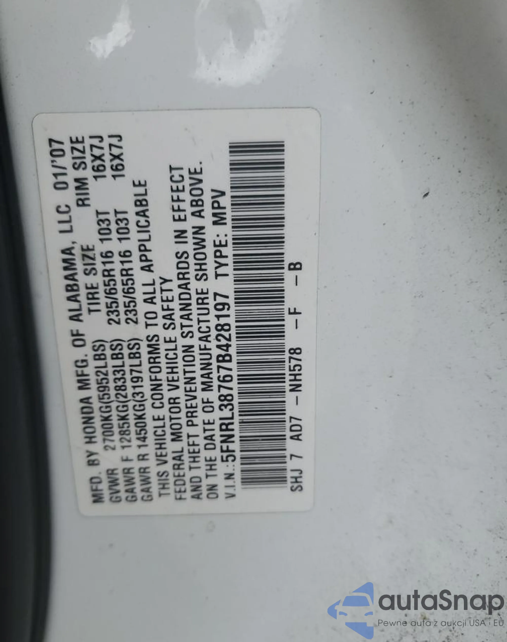 • VIN 2HKRW6H39JH201388
