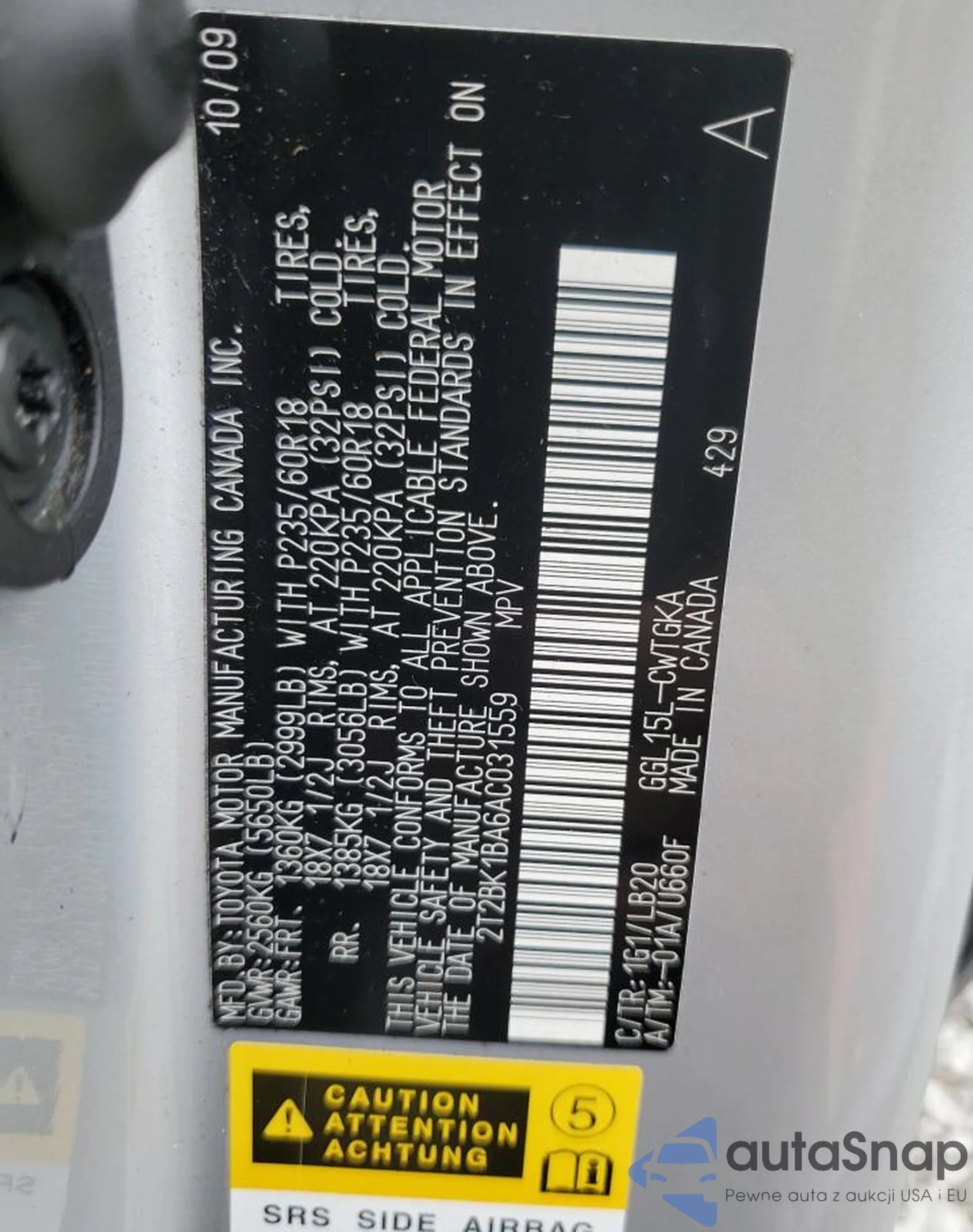 LOT: 85409355 VIN: 2T2BK1BA6AC031559