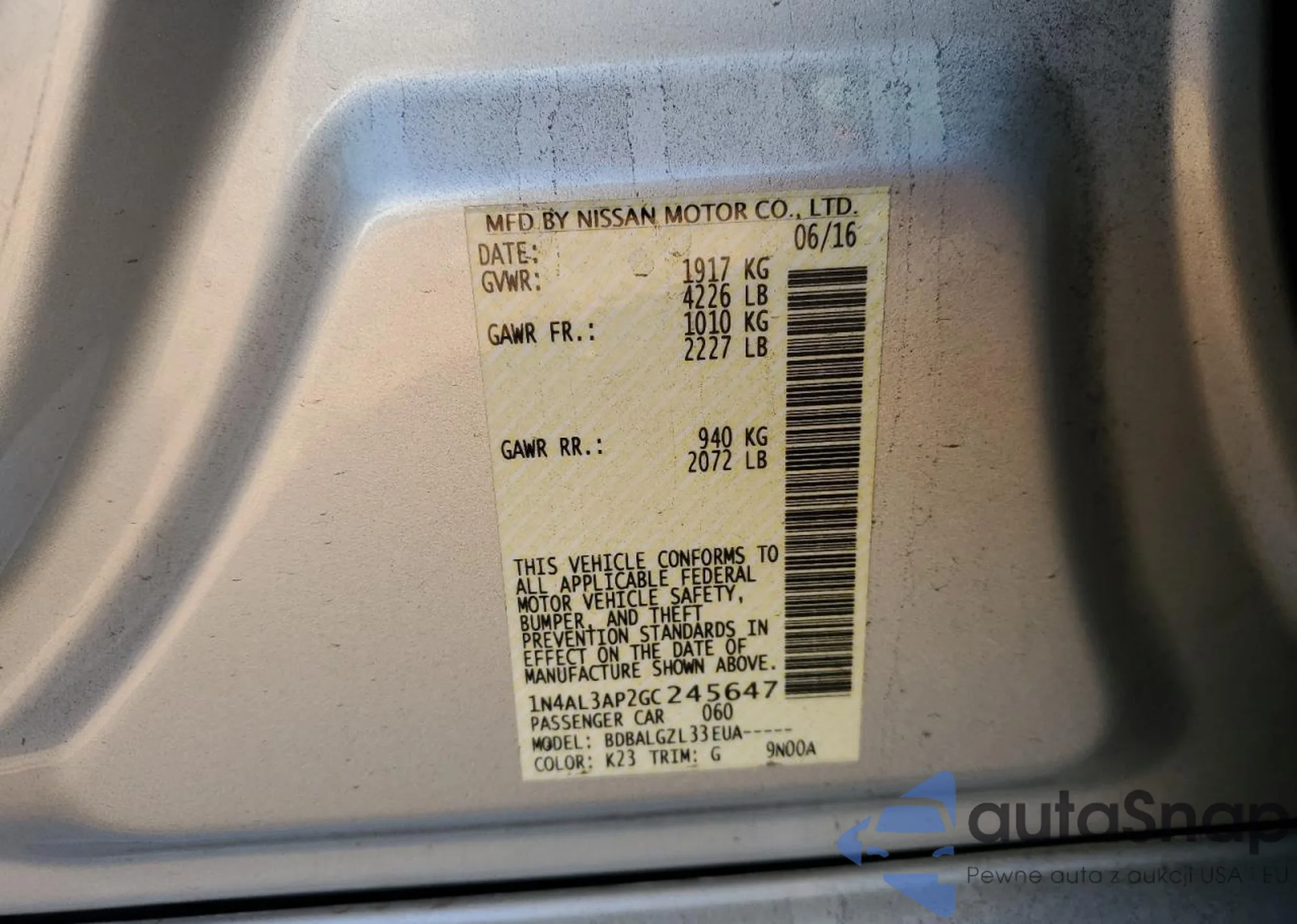 LOT: 89469945 VIN: 1N4AL3AP2GC245647
