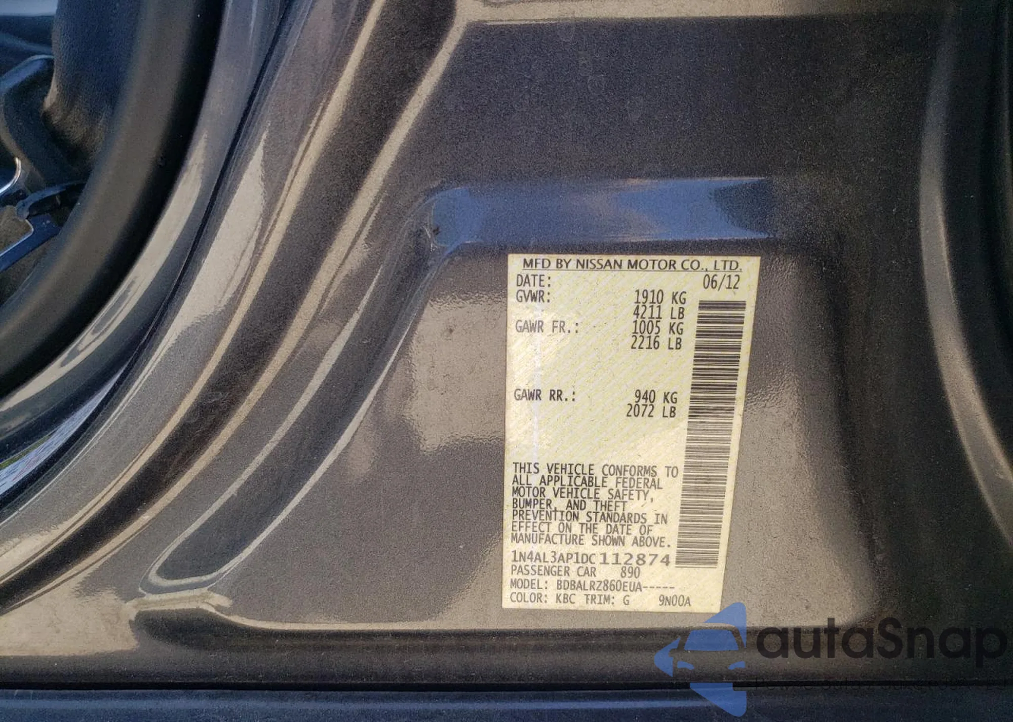 LOT: 90486645 VIN: 1N4AL3AP1DC112874