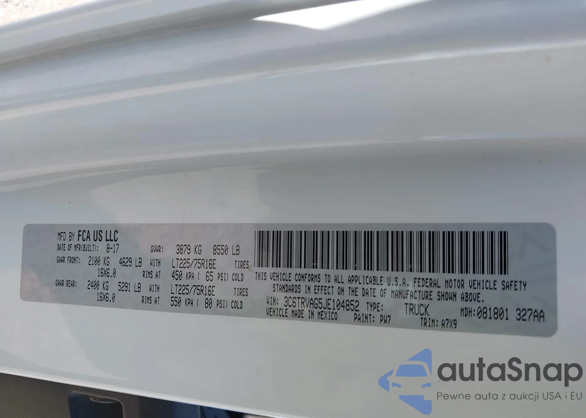 LOT: 43536985 VIN: 1FMCU9GD9JUA78037
