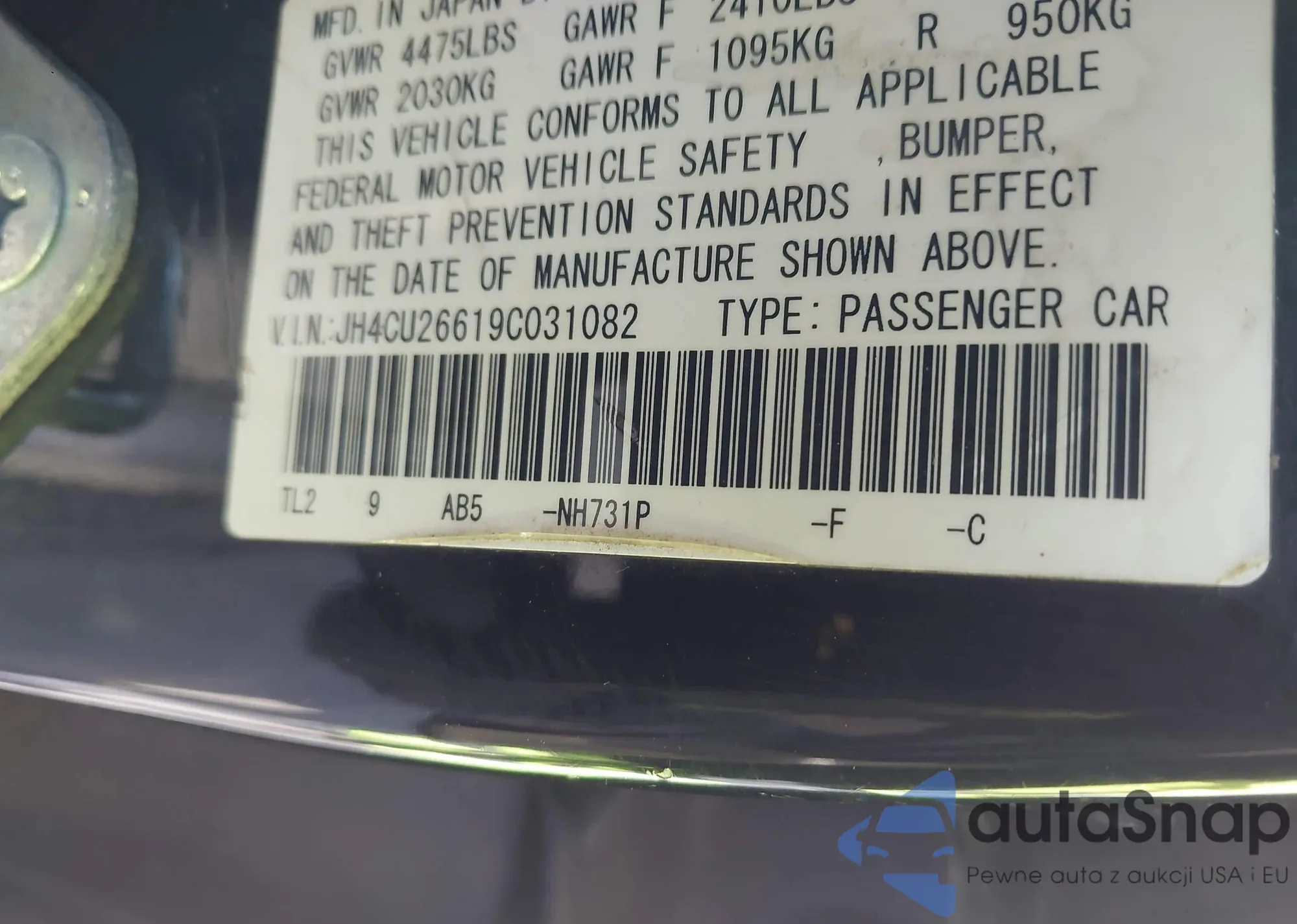 LOT: 43536816 VIN: JH4CU26619C031082