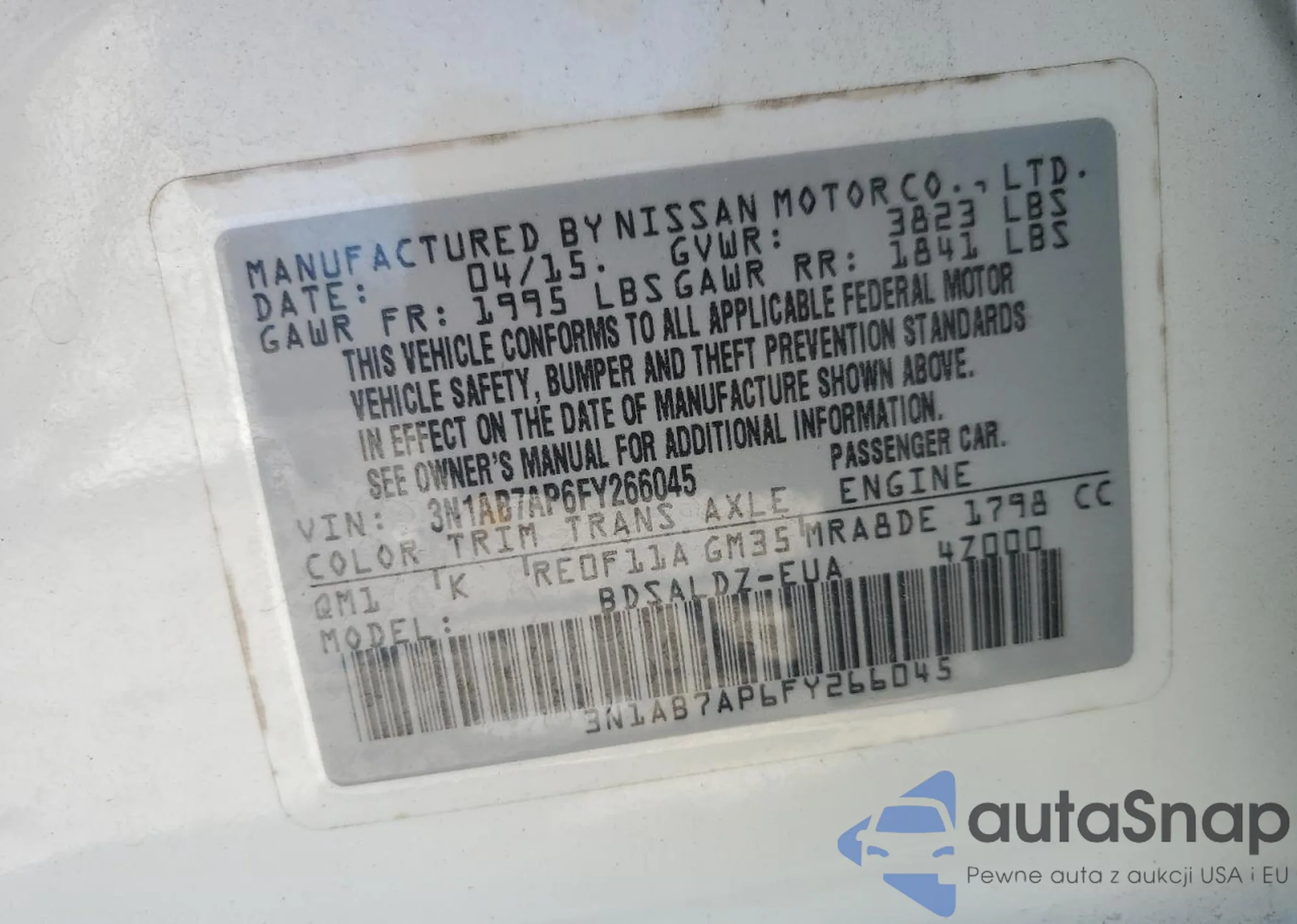 LOT: 85942045 VIN: 3N1AB7AP6FY266045