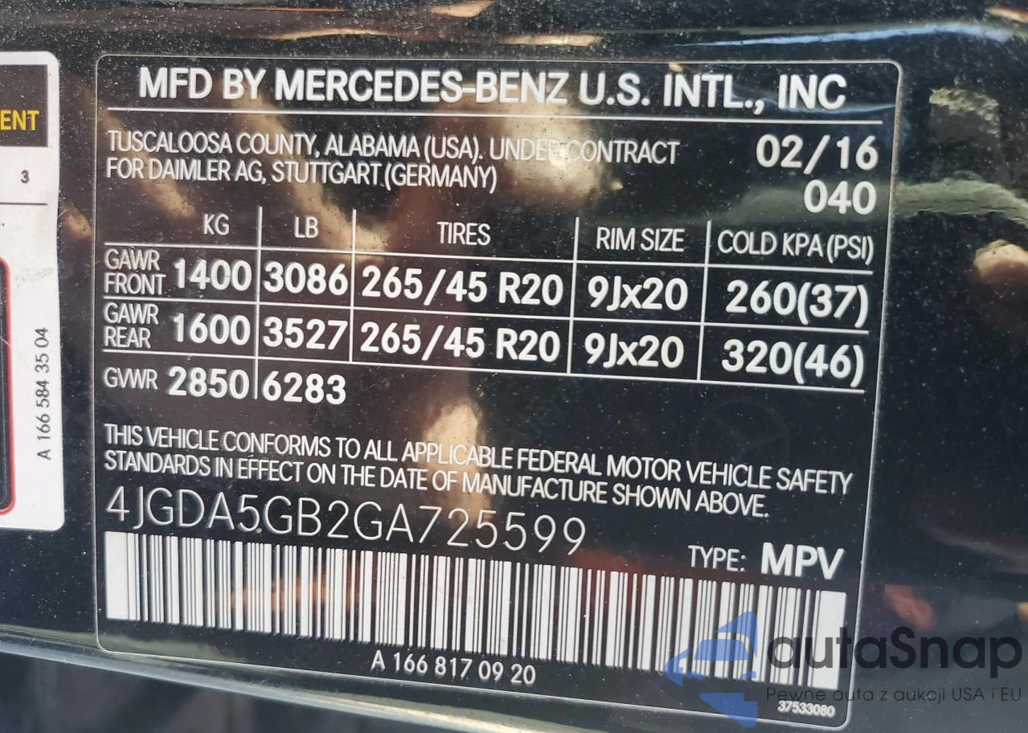LOT: 84981605 VIN: 4JGDA5GB2GA725599